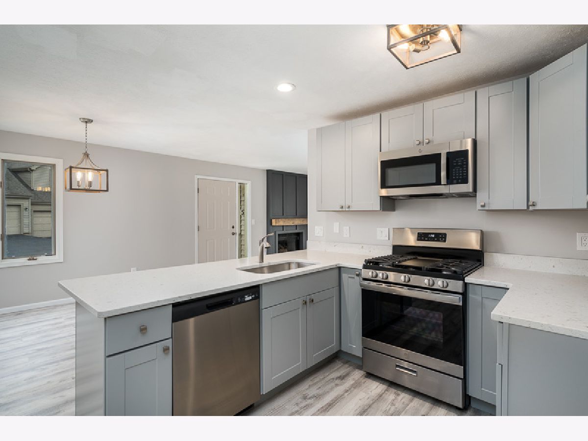 New, new, new! This condo has been completely remodeled. Brand new kitchen cabinets, quartz countertops, stainless appliances, flooring, paint, gas fireplace w/remote, bathroom etc. The main level is a open floor plan with peninsula island. 1st floor laundry. Finished lower level with rec room. White doors, screened in porch.