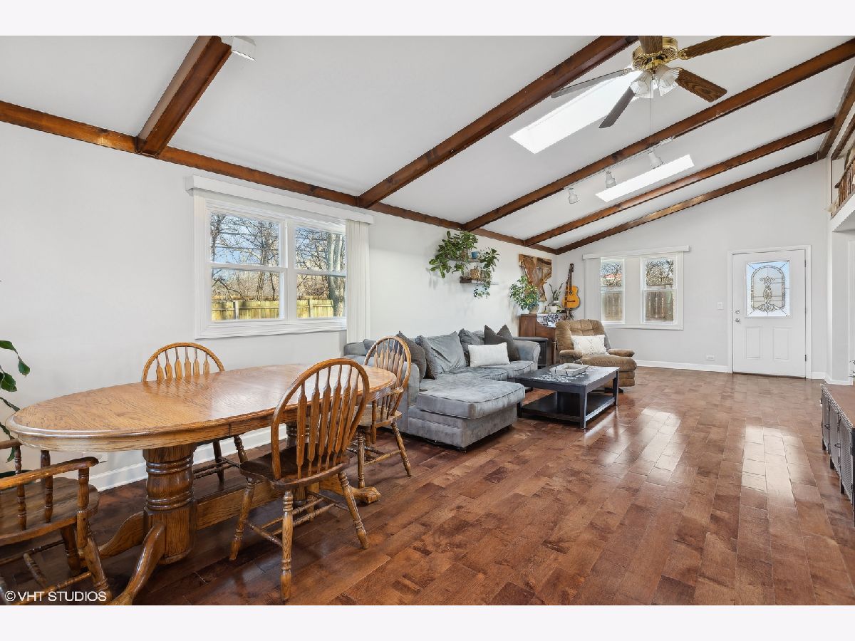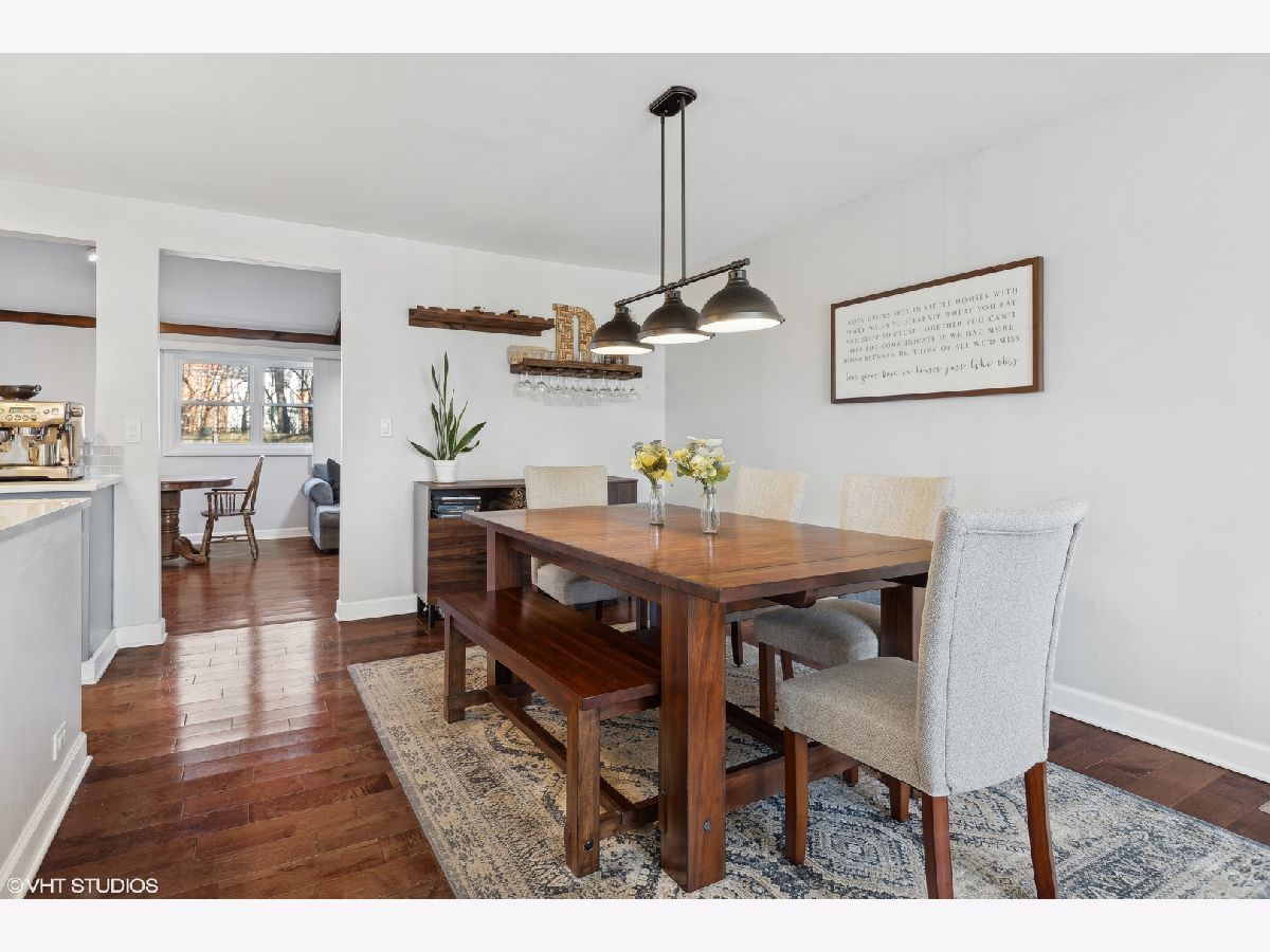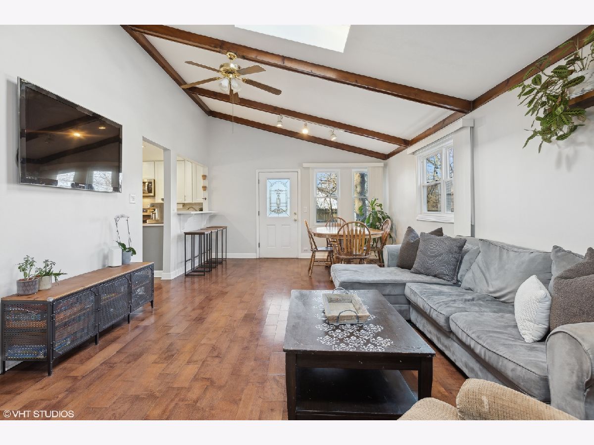 Nestled on a fenced lot with mature trees, this beautifully updated ranch offers both comfort and style. The inviting living room features a wood-burning fireplace with a custom ship-lapped surround, seamlessly flowing into the renovated kitchen and dining room-perfect for entertaining. The kitchen boasts 42" custom Shaker-style cabinets, granite countertops, and stainless steel appliances (renovated in 2019). A spacious family room with a vaulted ceiling and skylight floods the space with natural light, while an open loft overlooking the room makes an ideal home office or cozy retreat. The primary suite provides a private escape with an updated ensuite bath and sliders leading to a relaxing deck. Notable upgrades include 3/4" thick hardwood floors, renovated bathrooms with updated vanities and tile, custom built-in bookshelves, and a stylish feature accent wall in the nursery. A brand-new front door (2024) plus ample spring foliage with Hostas lining the front and back yard of the house and a young Eastern Redbud (planted 2020) showcased in front adds to the home's welcoming curb appeal. Enjoy the secluded backyard oasis with Italian wedding style string lights and a newly refinished deck (2024) wonderfully shaded by a mature Crimson King Norway Maple tree. With ample storage in the garage and backyard shed, this move-in-ready gem is waiting for you! Don't miss this opportunity in Glenview!
