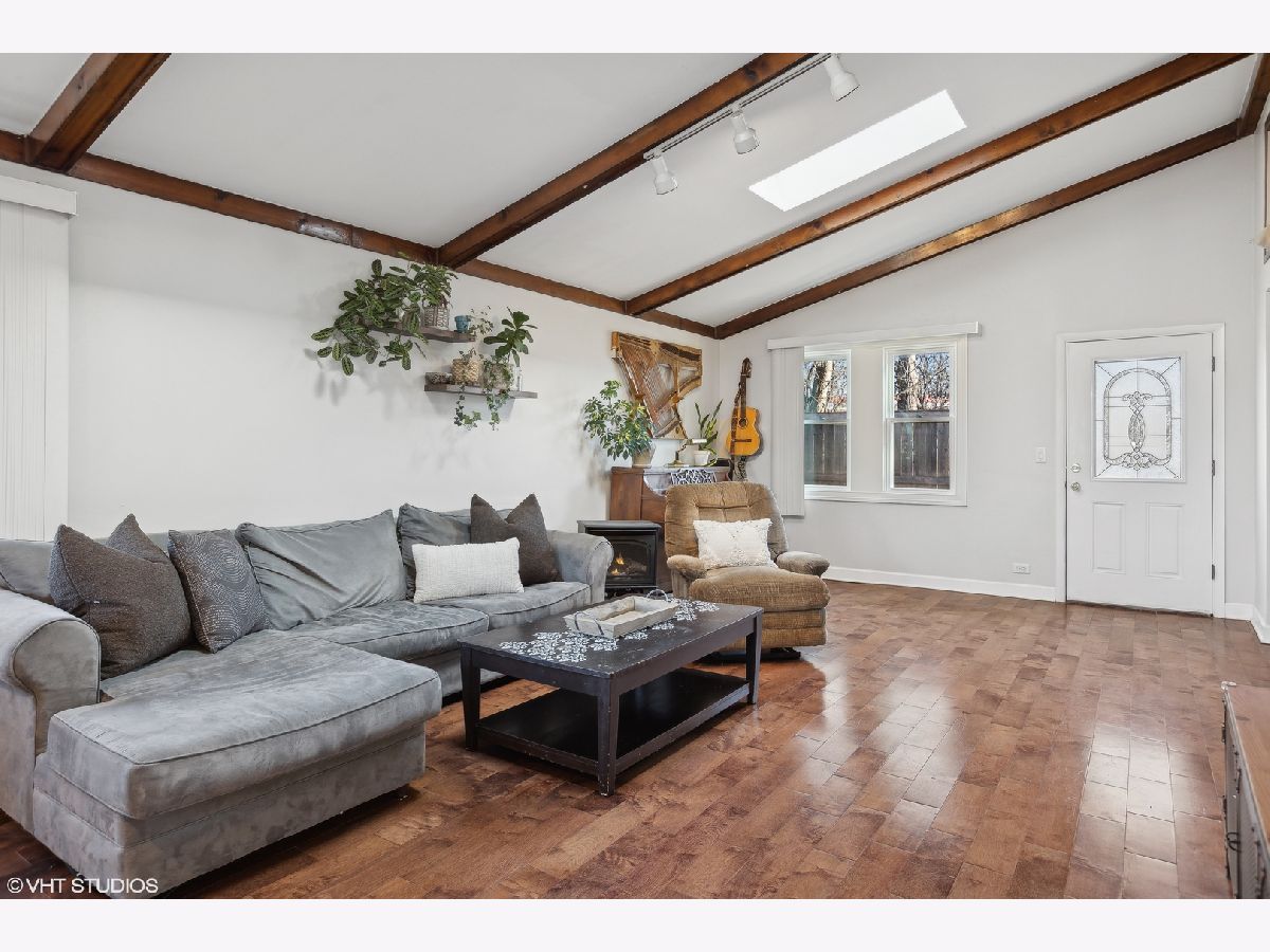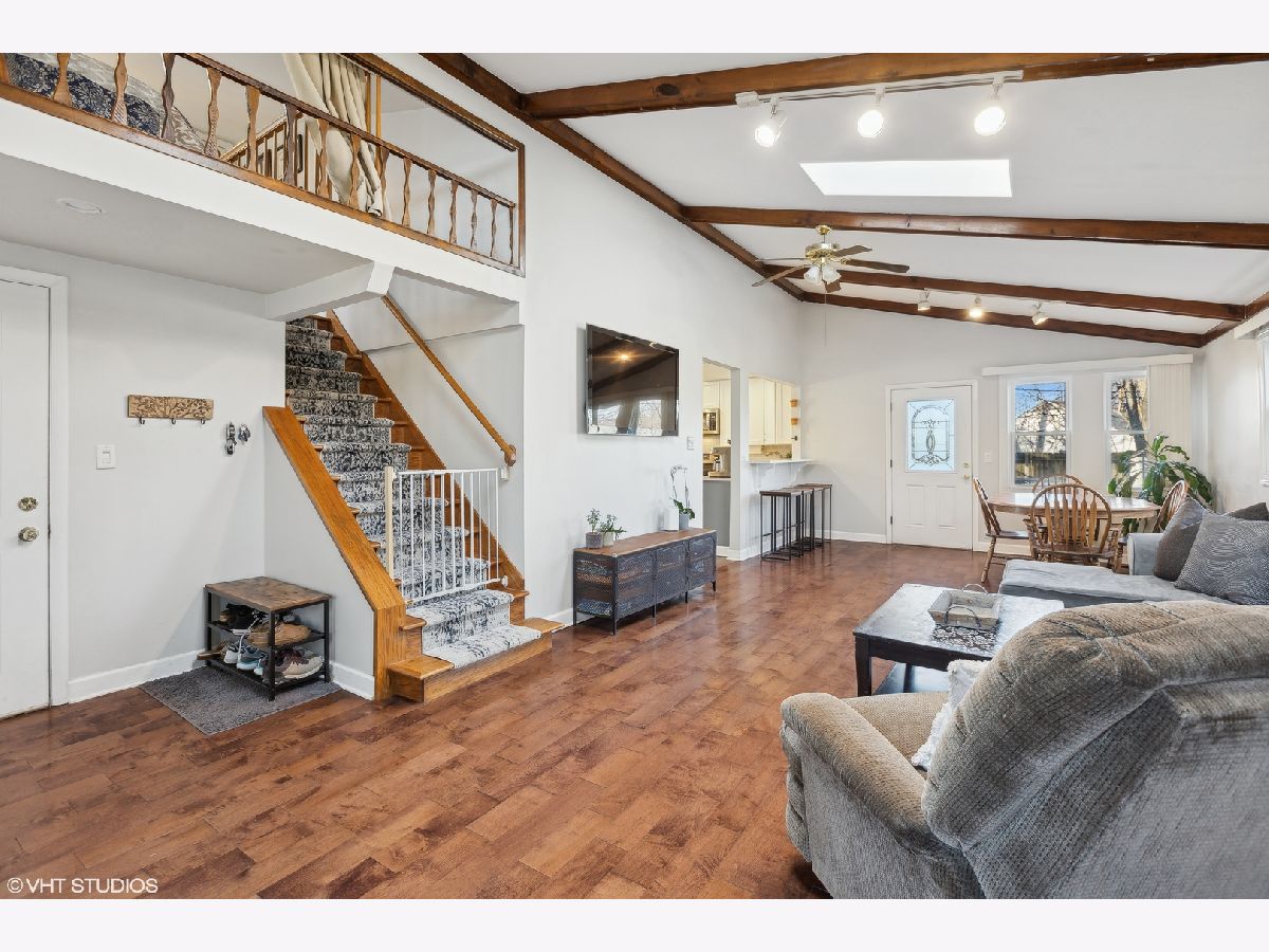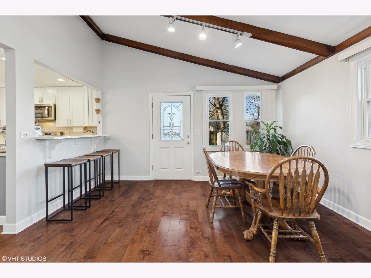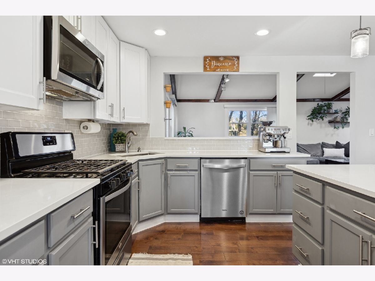 Nestled on a fenced lot with mature trees, this beautifully updated ranch offers both comfort and style. The inviting living room features a wood-burning fireplace with a custom ship-lapped surround, seamlessly flowing into the renovated kitchen and dining room-perfect for entertaining. The kitchen boasts 42" custom Shaker-style cabinets, granite countertops, and stainless steel appliances (renovated in 2019). A spacious family room with a vaulted ceiling and skylight floods the space with natural light, while an open loft overlooking the room makes an ideal home office or cozy retreat. The primary suite provides a private escape with an updated ensuite bath and sliders leading to a relaxing deck. Notable upgrades include 3/4" thick hardwood floors, renovated bathrooms with updated vanities and tile, custom built-in bookshelves, and a stylish feature accent wall in the nursery. A brand-new front door (2024) plus ample spring foliage with Hostas lining the front and back yard of the house and a young Eastern Redbud (planted 2020) showcased in front adds to the home's welcoming curb appeal. Enjoy the secluded backyard oasis with Italian wedding style string lights and a newly refinished deck (2024) wonderfully shaded by a mature Crimson King Norway Maple tree. With ample storage in the garage and backyard shed, this move-in-ready gem is waiting for you! Don't miss this opportunity in Glenview!