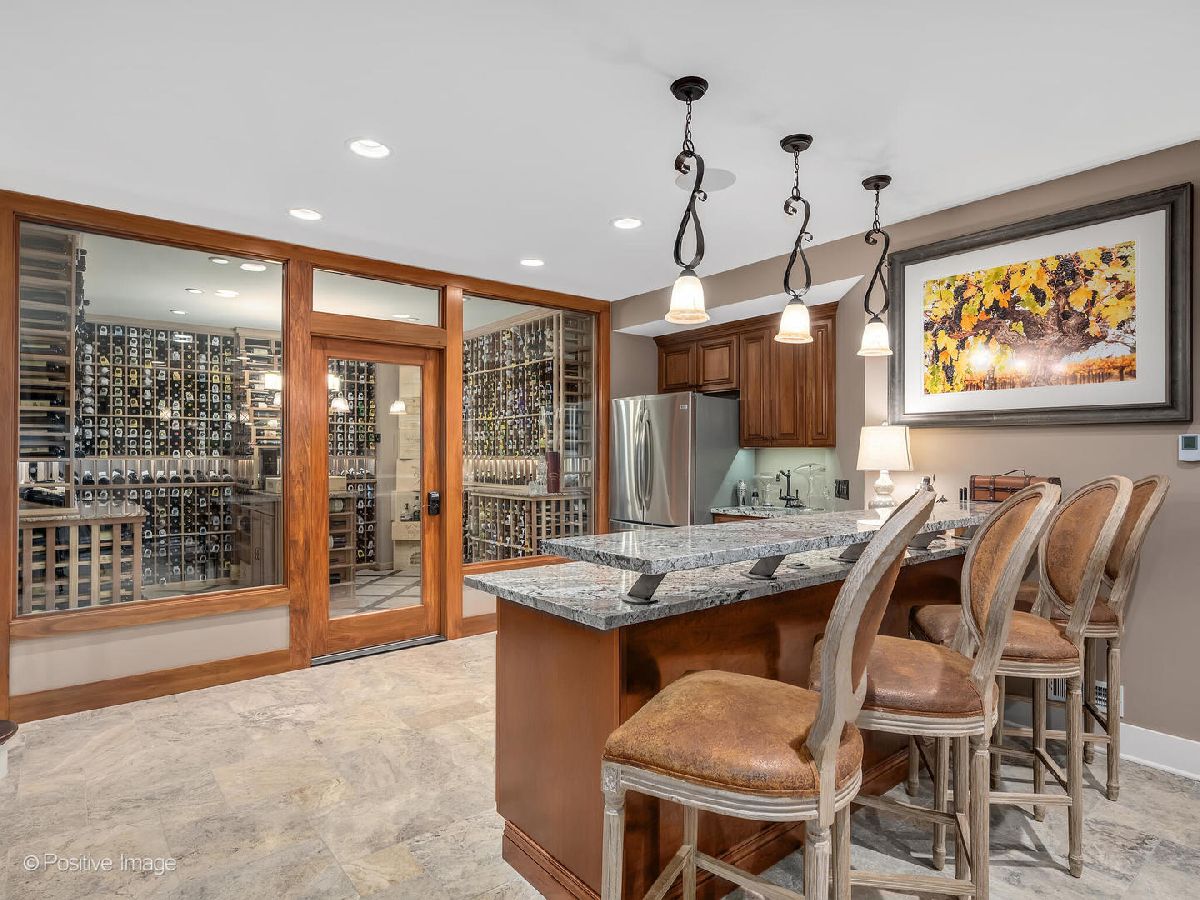 TRULY ONE OF A KIND! ~A New England Escape~ set on a private street 2 blks to elementary school/5.5 blks to Highland Station/Metra. Framed by mature trees and boxwood gardens; this beautiful 5 bedroom/4.2 bath home is located in the HEART of THE LANE SCHOOL district. Gourmet kitchen featuring granite island and counters; glass tile backsplash, Wolf gas cooktop & stainless appliances. Hardwoods on 1st lvl & primary suite. Detailed millwork & moldings. Plantation shutters on 1st lvl & blinds throughout the home. Butler's pantry; side door egress, 1st level laundry and mudroom. Unmatched outdoor entertaining space! Pergola, stone patio; outdoor kitchenette/stainless grill and built in fridge, a stone pizza oven and a wood burning outdoor fireplace! Love wine? Wait until you see the lower level 2200 bottle, temperature controlled wine cellar/display/tasting room. The basement offers a cozy media room/den; complete with gas fire place; radiant heated travertine floors; granite bar w/ seating; Fisher Paykel dishwasher; copper sink; stainless fridge & remodeled 1/2 bath. Storage room with floor to ceiling wall space; work room option and mechanicals. Generator; radiant heat in lower level and primary bath, radon mitigation system, irrigation for lawn and outdoor lighting. Concrete driveway with 2-Car attached garage. D181 & Hinsdale Central D86. Visit & See!