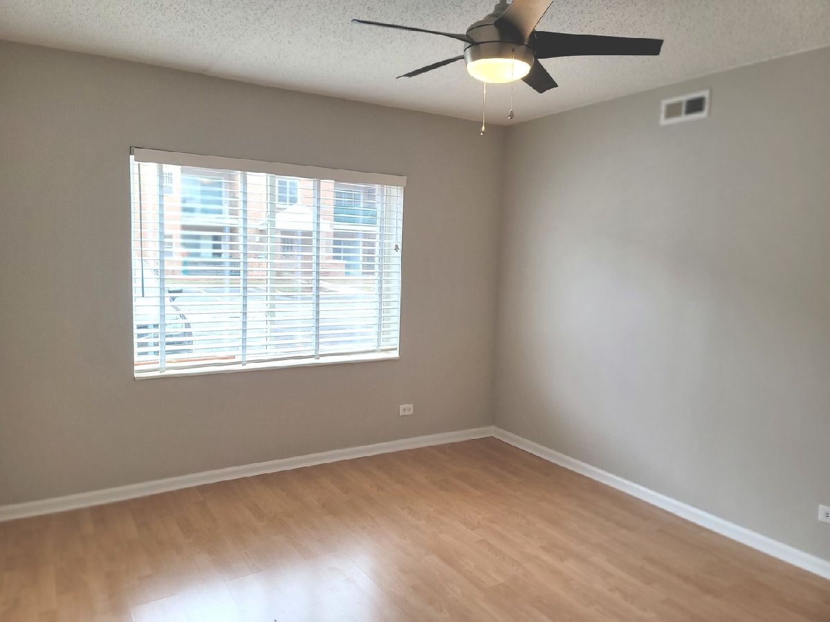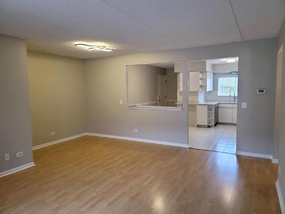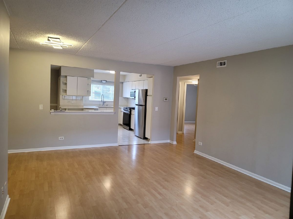 Spacious 2 bedroom main level unit (1,200 sf) in a quiet complex with cement ceilings that provide you the privacy from hearing your neighbors. This open floor plan: 2 bed/2 bath unit, has been renovated one year ago. All new stainless steel appliances, quartz countertops, and new HVAC unit. The unit also has a separate dining room area, large private patio (grills allowed) and & a private parking space included. There are two spacious walk-in closets, plenty of storage, as well as an in-unit washer and dryer. This property is located right by most major highways, O'hare airport, public transportation such as the CTA (blue line), and all the shopping you could ask for right down the street. Low HOA and no special assessments. Located across the street from a forest preserve and walking distance to parks. Investors - this unit can be rented for the $2,000 range.