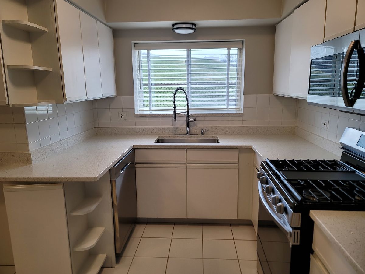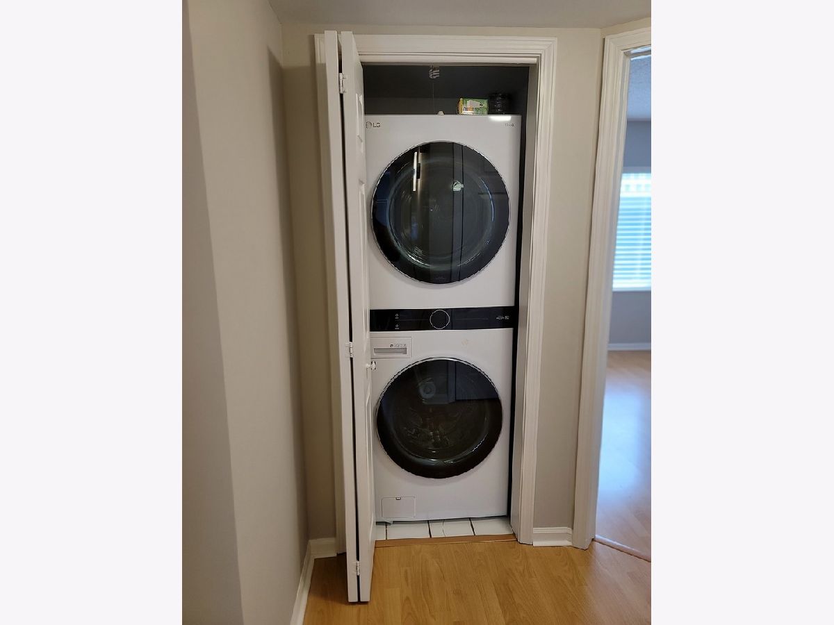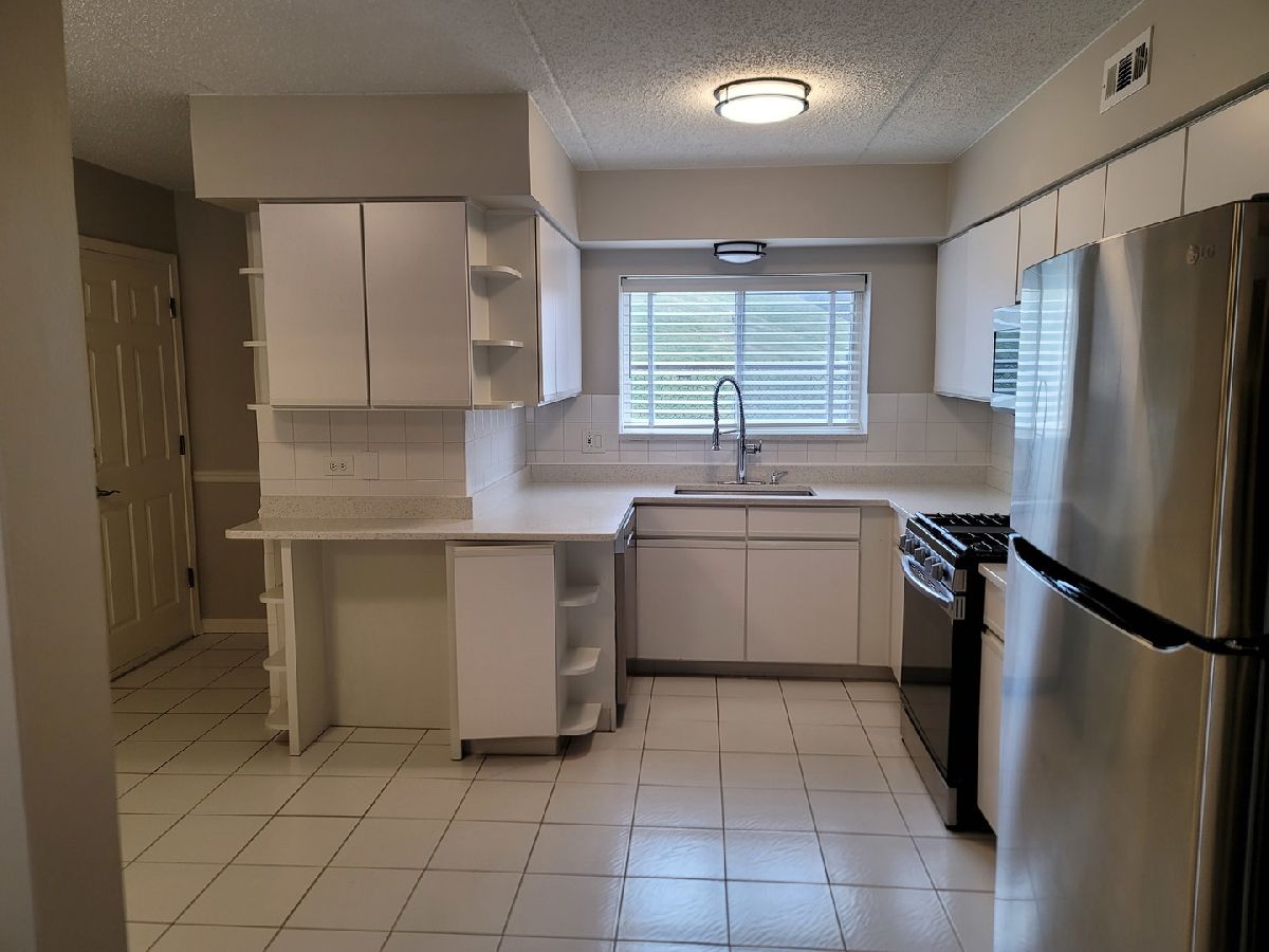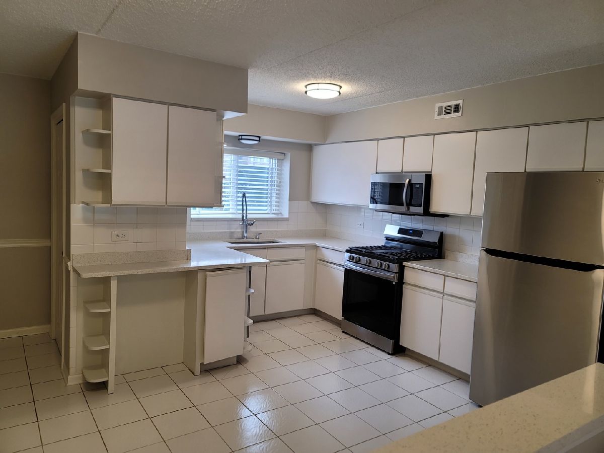 Spacious 2 bedroom main level unit (1,200 sf) in a quiet complex with cement ceilings that provide you the privacy from hearing your neighbors. This open floor plan: 2 bed/2 bath unit, has been renovated one year ago. All new stainless steel appliances, quartz countertops, and new HVAC unit. The unit also has a separate dining room area, large private patio (grills allowed) and & a private parking space included. There are two spacious walk-in closets, plenty of storage, as well as an in-unit washer and dryer. This property is located right by most major highways, O'hare airport, public transportation such as the CTA (blue line), and all the shopping you could ask for right down the street. Low HOA and no special assessments. Located across the street from a forest preserve and walking distance to parks. Investors - this unit can be rented for the $2,000 range.