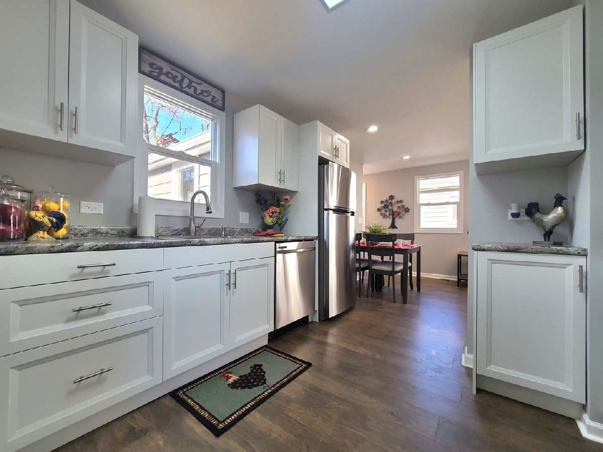 Completely updated cottage style ranch located on the West side of Aurora. The brand new kitchen features white cabinets with soft close doors / drawers, new counter tops, and stainless steel appliances. Most everything in this 700 S.F., 2 bedroom, 1 bathroom home is new including the kitchen, bathroom, carpet flooring, doors, windows, furnace, central air conditioning, facia, soffit, gutters, landscaping and much more! The large 2 car garage has a huge attic space for additional storage. This is a true turn key home and is ready for its new family.