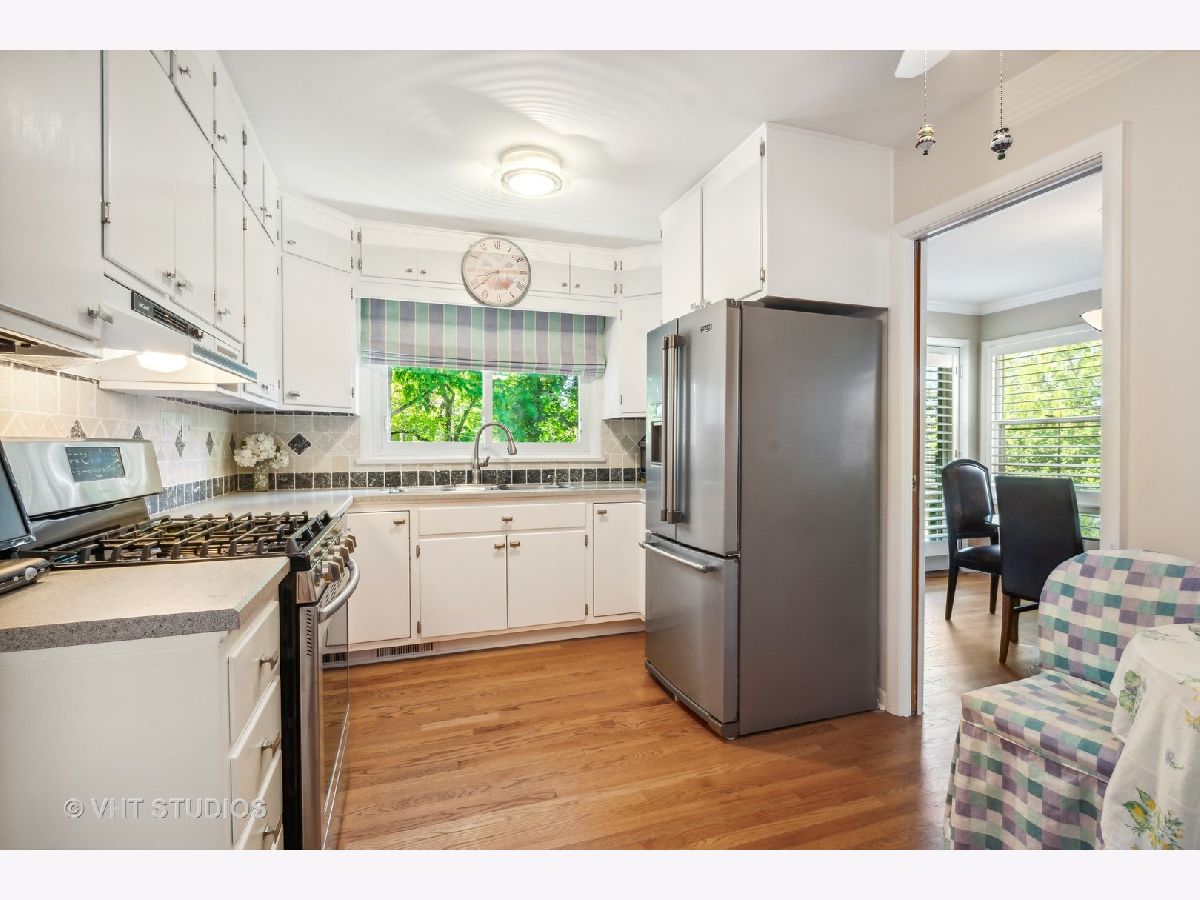 Move-in condition all brick ranch in the heart of the Village! Located on one of Barrington's most desirable streets, this home is close to town, shopping, Metra and the library. Updated and beautifully decorated with a white kitchen featuring all stainless appliances, custom backsplash and table space. Adjacent formal dining room has a French door to a large deck (one of two decks!) overlooking the gardens and back yard. Great for entertaining, morning coffee or just relaxing. Spacious living room features a wood burning fireplace and big bay window to let the sun shine in! Plantation blinds in living room, dining room, bedrooms, bathroom. One of the three bedrooms is currently being used as a first floor office and has it's own cozy private deck. Gleaming hardwood floors on the main level. Updated first floor bathroom with tub features custom tile surround and classy vanity. Fabulous lower level with door to back yard has spacious family room, exercise room, huge laundry room and bathroom. Don't miss this beautiful home in a great village location. Lovingly maintained and in move-in condition!