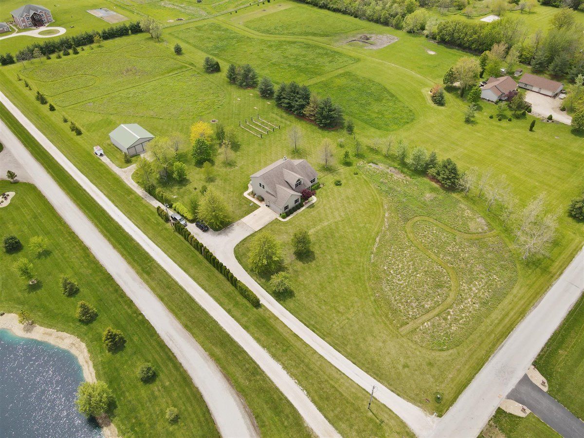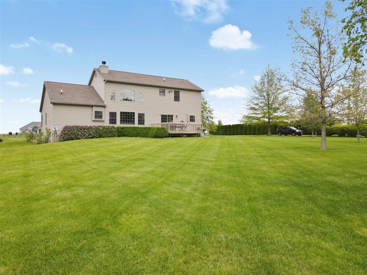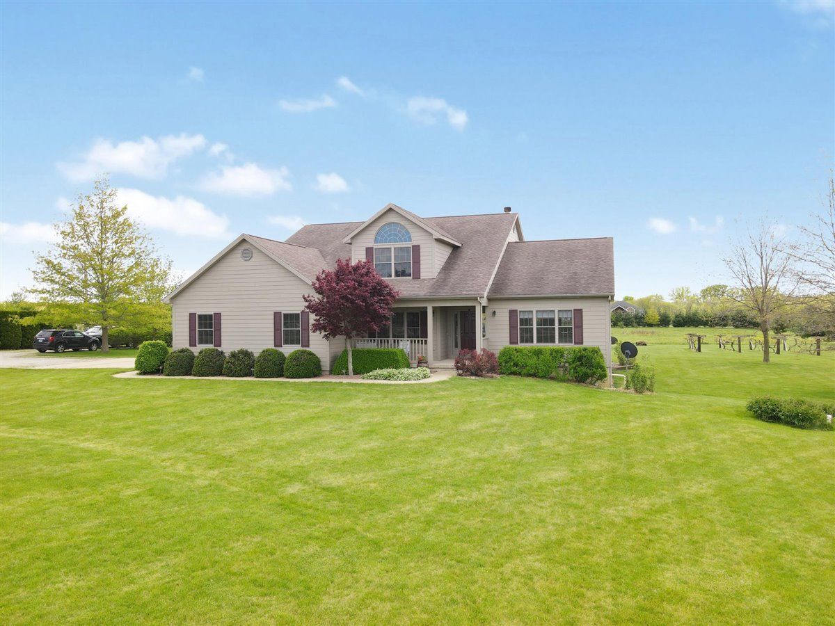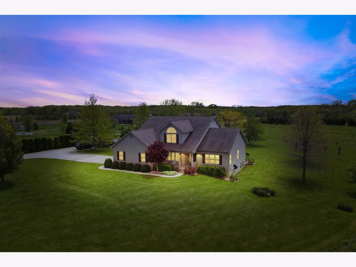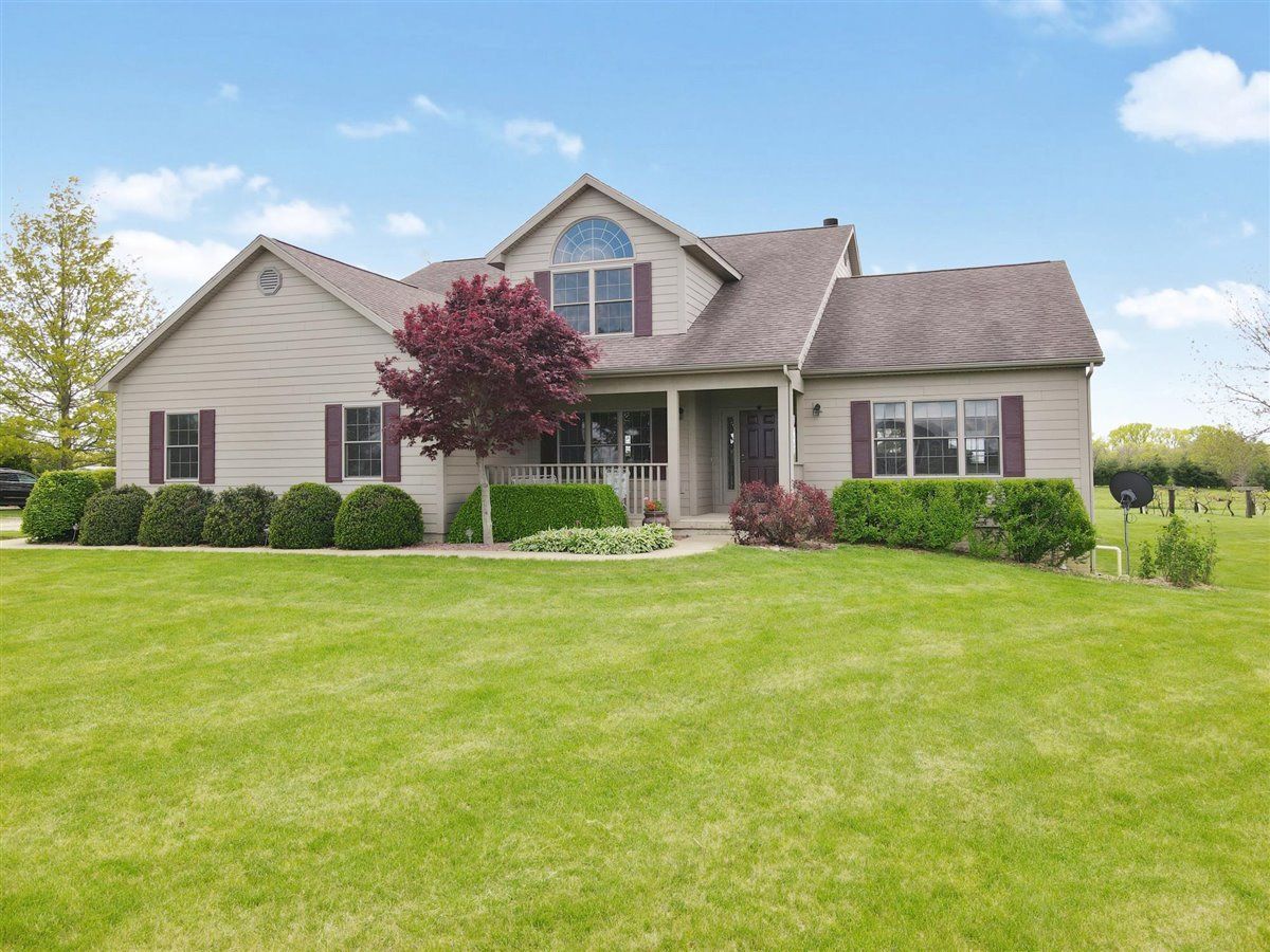Welcome to your new home on 5 acres in the Mahomet countryside! This 5 bedroom 4.5 bath two story home on a partially finished basement has had one owner since it was built in 2001. It has Andersen windows throughout except for the basement, geothermal heating, and fiber cement siding. As you walk in and see the hardwood floors you will also see a two story tall living room with plenty of natural light and a gas fireplace. The kitchen has hickory cabinets, Samsung appliances, quartz countertops, and tile backsplash. The master bedroom is on the main level and the master bath has a whirlpool tub and separate shower. The second level has a hallway full bath and three bedrooms that all have walk-in closets. One is an in-law suite. The basement has an extra large rec/family room, a bedroom with an egress window, a flex room, full bath, and a wet bar. The house sits on a 5 acre lot that has a line of arborvitaes to the east, some fruit trees throughout, established wine grapes, and nearly 2 acres of restored native prairie with trails. There is also a large metal shed with power to store the riding mower and extra vehicles.