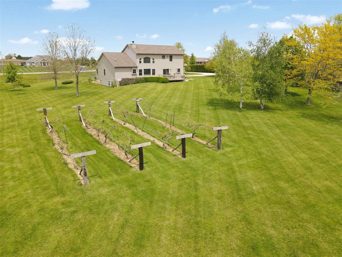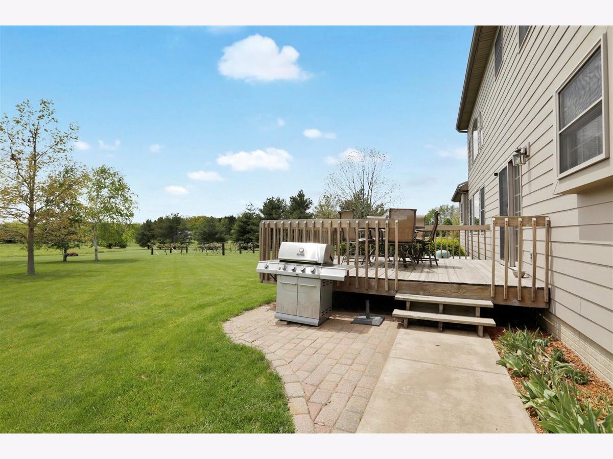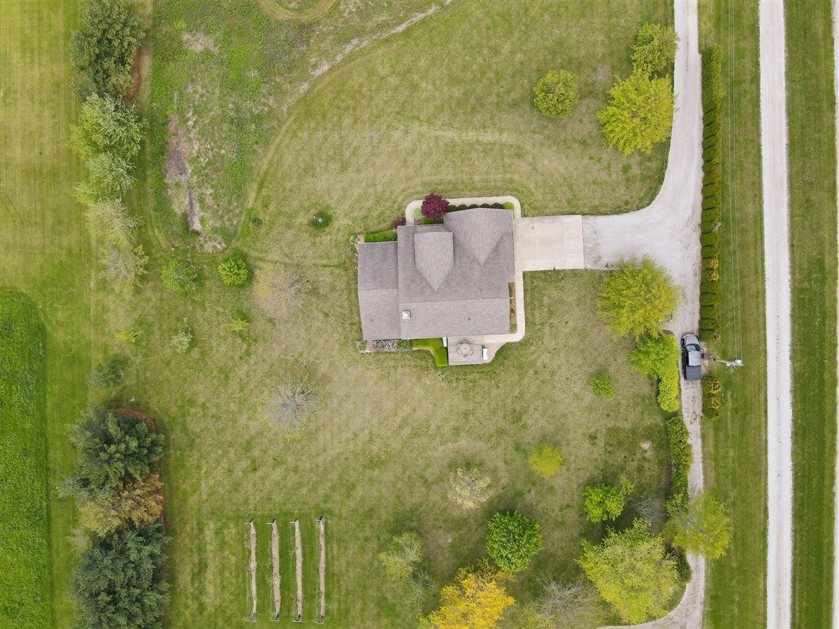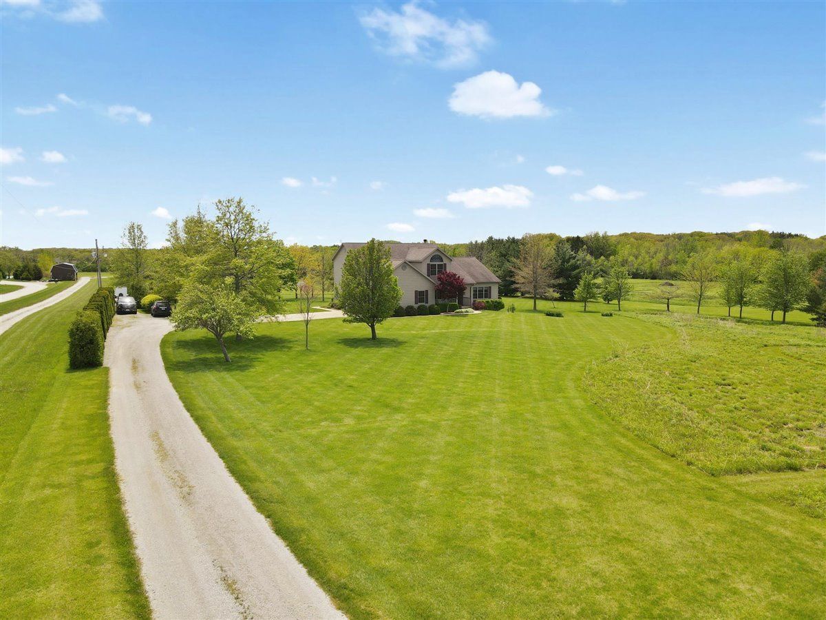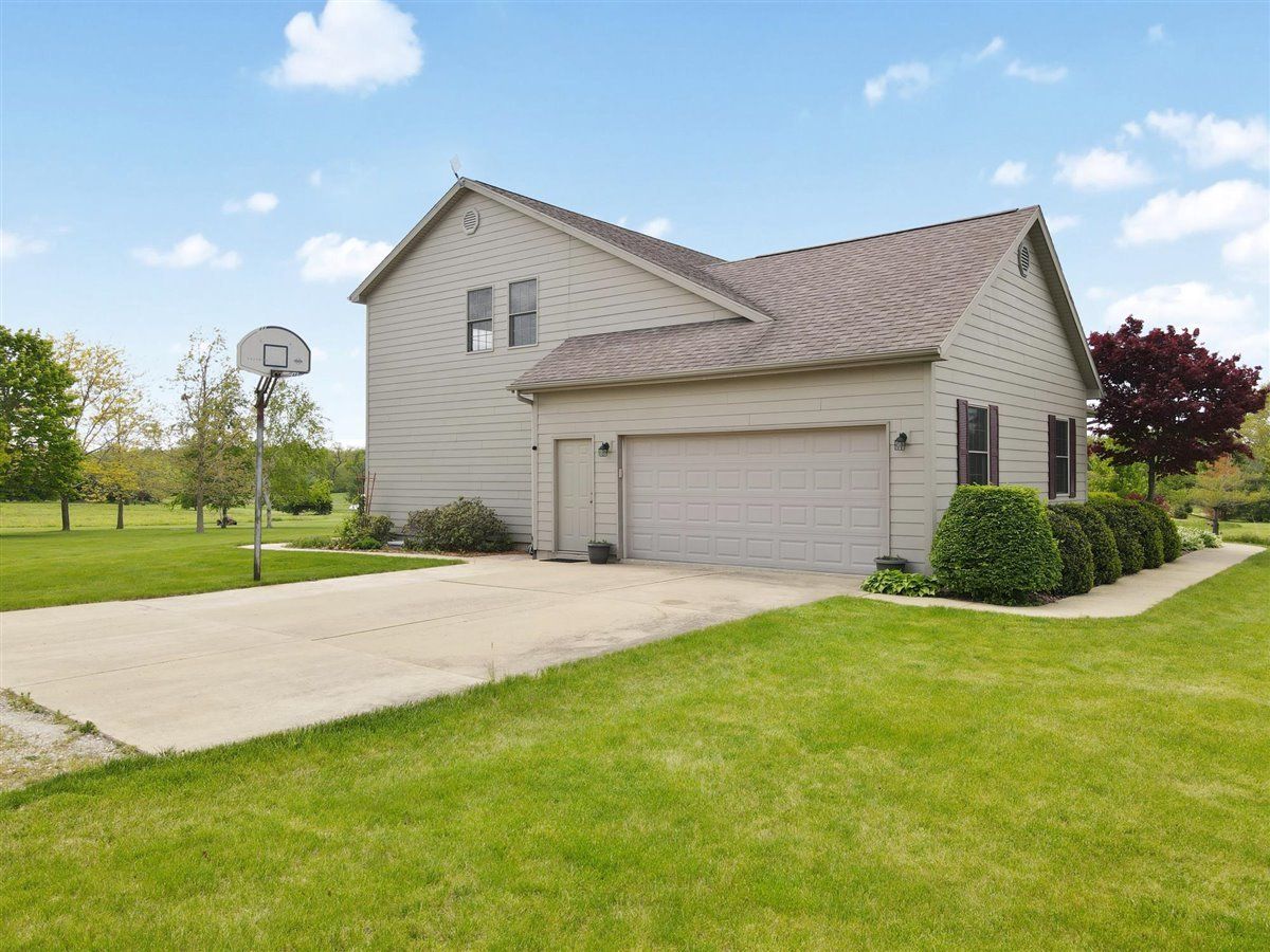 Welcome to your new home on 5 acres in the Mahomet countryside! This 5 bedroom 4.5 bath two story home on a partially finished basement has had one owner since it was built in 2001. It has Andersen windows throughout except for the basement, geothermal heating, and fiber cement siding. As you walk in and see the hardwood floors you will also see a two story tall living room with plenty of natural light and a gas fireplace. The kitchen has hickory cabinets, Samsung appliances, quartz countertops, and tile backsplash. The master bedroom is on the main level and the master bath has a whirlpool tub and separate shower. The second level has a hallway full bath and three bedrooms that all have walk-in closets. One is an in-law suite. The basement has an extra large rec/family room, a bedroom with an egress window, a flex room, full bath, and a wet bar. The house sits on a 5 acre lot that has a line of arborvitaes to the east, some fruit trees throughout, established wine grapes, and nearly 2 acres of restored native prairie with trails. There is also a large metal shed with power to store the riding mower and extra vehicles.