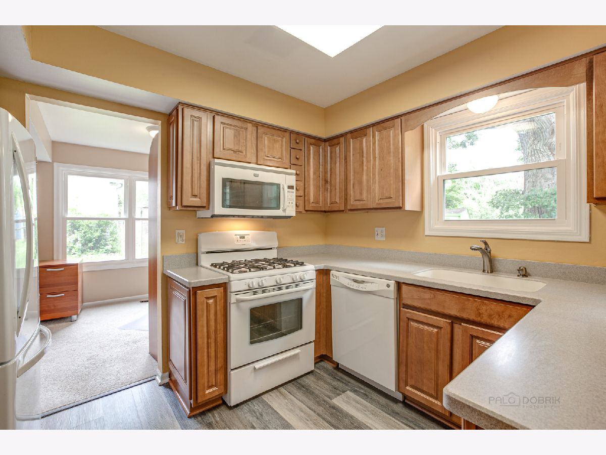 Maintained to perfection! Lovely home backing to park and McDonald Woods Forest Preserve. Manicured yard with nature views. Foyer entrance with beautiful vinyl floors which continue into the kitchen. Coat closet and open stairway as you enter. Spacious living room is only steps away from the dining room. Vaulted ceilings in the family room with beautiful fireplace, built-ins, and exterior access. Large eat-in kitchen boasts all appliances, breakfast bar, and eating area. Generously sized bedrooms. Master suite features personal vanity and sink. Stunningly updated full bath with glass shower. Laundry room features washer, dryer, and extra cabinets. Water heater 2014. Furnace and A/C 2010. Enjoy some fresh air on the patio with great views of the park and forest preserve. Outdoor shed. This one is a winner!