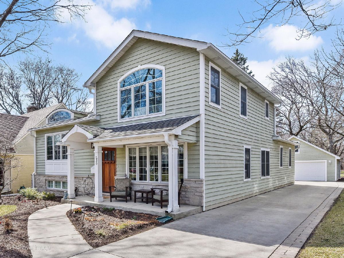 Beautiful updated 4-bedroom home in great location. So close to everything, walk to town, train, schools & prairie path! Great open floor plan. Large living room with wood burning fireplace, separate dining room with arched doorways, hardwood floors throughout first floor. Full addition was added in 2007 to include a gourmet kitchen, family room and private master suite with separate staircase! Kitchen has all stainless-steel appliances including GE side by side refrigerator, Dacor 6 burner range, Bosch dishwasher, granite countertops, large island with pendant lighting and counter seating. Open to large family room with vaulted ceiling, recessed lighting, wood burning fireplace with gas starter, wet bar with sink and beverage refrigerator, is perfect for entertaining. Private staircase leads to oversized master suite, large bedroom with vaulted ceiling, enough space for sitting or desk area, master bath with double sinks, granite countertops, separate walk-in shower & walk-in closet. Second level hosts 3 secondary bedrooms all with hardwood floors and ample closet space, plus full hallway bath with granite countertops. Lower level with finished recreation room has above ground windows for natural light, plenty of storage space, full bath with pedestal sink and laundry room. Entertain and relax on oversized brick paver patio with built-in gas grill (natural gas line to house) overlooking deep, private tree lined lot. 2007 updates included new Pella windows & cedar siding. Downstairs furnace 2018, Humidifier 2021, Water heater 2017, Samsung washer/dryer 2019, Upstairs furnace and A/C 2006. This home has so much to offer. Move in ready...Come see this today!