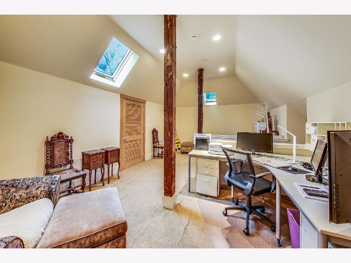 Originally a carriage house; expanded and completely renovated in 2004. This charming beauty with an exceptionally deep setback is located on one of River Forest's most architecturally significant and tranquil streets. Three floors of above grade living space, totaling 3,838 finished sq ft. 4 beds/2.2 baths, second floor laundry, plus a finished lower level rec room w/ half bath, massive unfinished storage space and an attached 2 car garage. The main level boasts rustic wide plank Cyprus floors and has an open plan that flows around a center stack staircase. Gourmet kitchen features marble and quartz counters, a beautiful wooden hutch imported from Czech Republic, custom cabinetry and stainless appliances as well as a walk in pantry. The family room has a stone faced wood burning fireplace and French doors that walk out to a Bluestone patio. The dining room area features a full bulter's pantry including wet bar, wine fridge, marble topped custom cabinetry offering plenty of storage for stemware and fine china. A living room conversation area offers stunning views of the newly landscaped park-like front yard. The spacious 2 story primary en-suite includes large carrara marble bath with double vanity, soaking tub, separate shower and private water closet. The walk-in closet leads to the 3rd floor sitting room with skylights and vaulted ceilings. Three more bedrooms, a full bath and laundry room complete the 2nd floor. Above the attached garage, accessible through a bedroom closet, is a large attic for storage, but is also prepped to convert into additional interior living space. The basement has finished rec room, half bath and huge unfinished space with loads of potential.