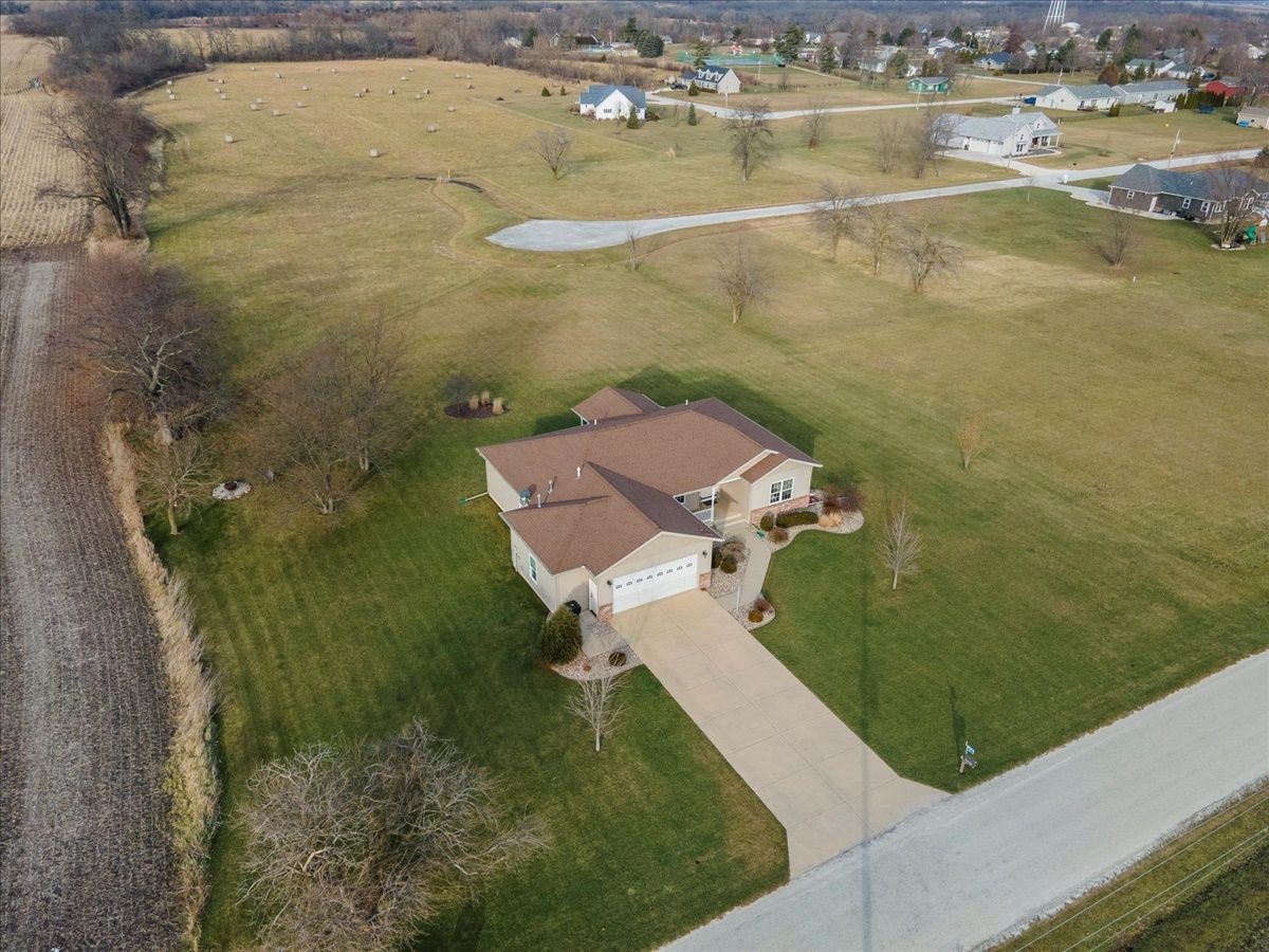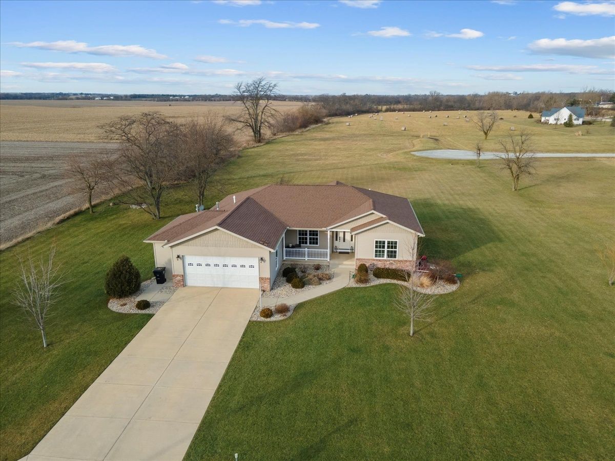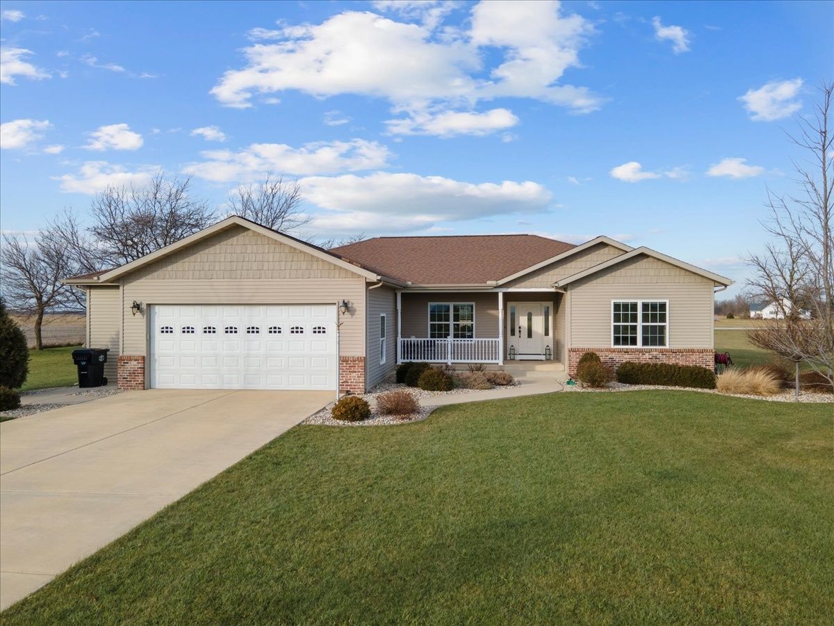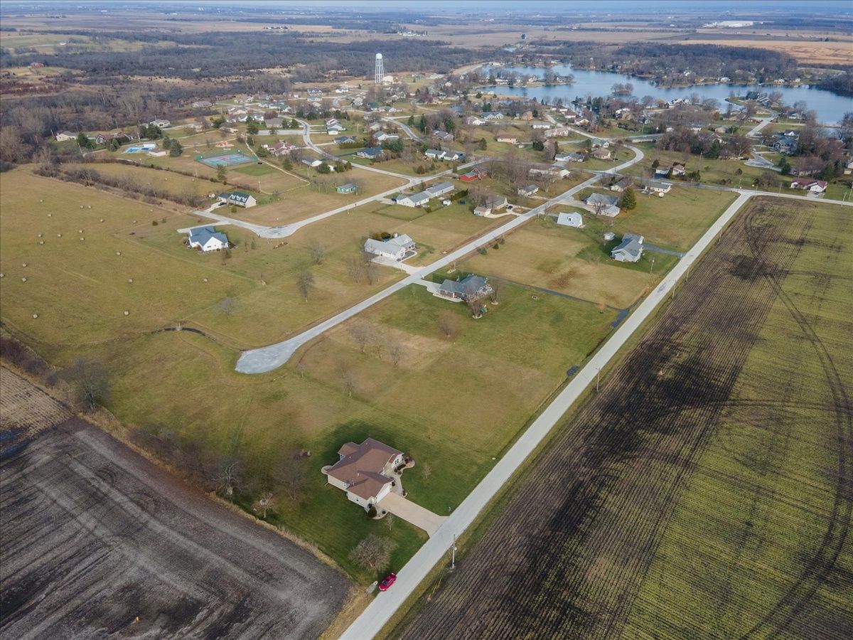 Immaculate 7 year old one-story 4 bedroom, 2.5 bathroom home with over 1800 square feet of living space and an attached 2.5 car heated garage. If you are looking for a rural property or a home located within a lake community, this property is a hybrid offering a taste both of those worlds. Located within the Lake Iroquois subdivision with access rights to the lake and all association amenities, this property sits on the far West outskirts on nearly 1 acre of land with rear access from the Arapahoe Lane cul-de-sac. The home provides an open floor plan for the living room, dining room and kitchen areas with features including 9 foot ceilings, Quartz countertops, kitchen island and decorative pillars. It has a split bedroom plan, with a master suite to the West with a walk-in closet and full bathroom including separate jacuzzi tub and cultured marble shower, and all other bedrooms to the East currently set up as 2 bedrooms and an office. A full bathroom with a tub shower is shared and located next to these bedrooms. The 2.5 car garage is nicely finished and versatile to be used for extra living space and family gatherings... fully insulated, drywalled and heated, with exceptional lighting and a water supply. Bonus features include: utility area from the garage with laundry, mud sink and guest half bathroom; covered front porch with sitting area; covered rear lanai for entertainment and country views; and an oversized lot for extra space and possible expansion.