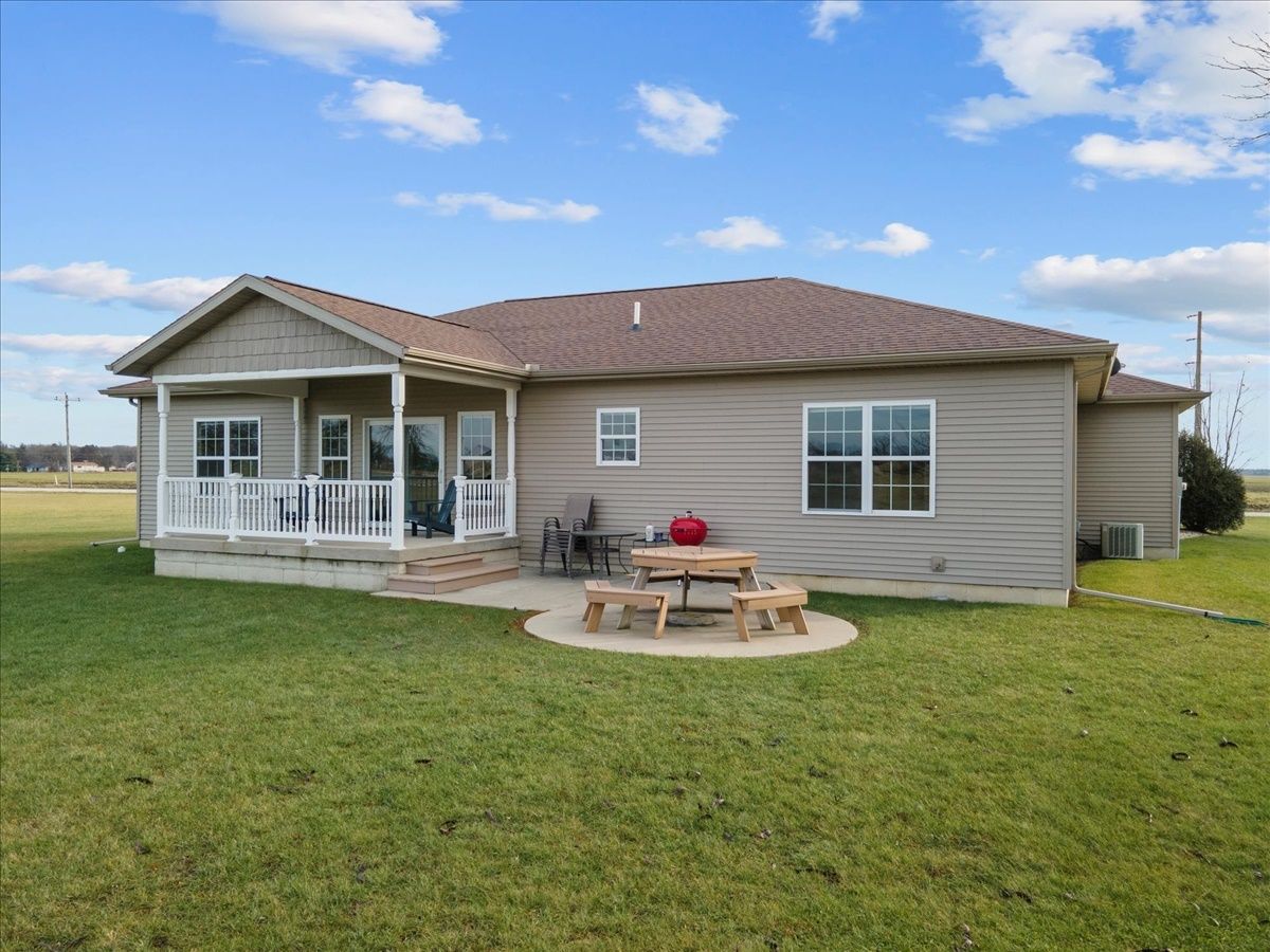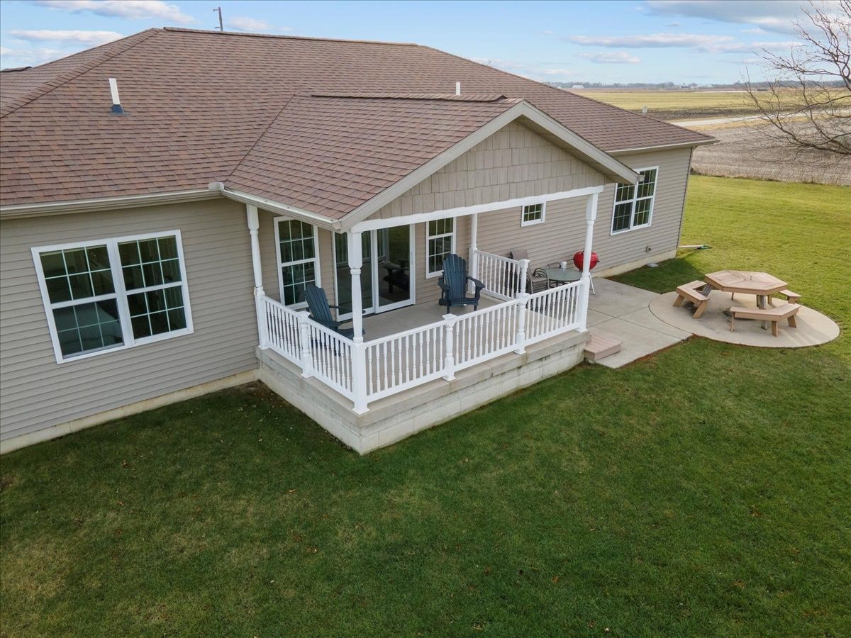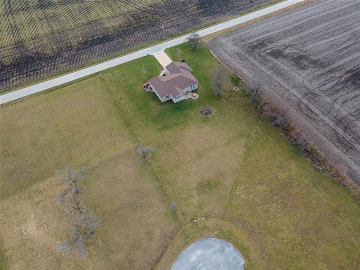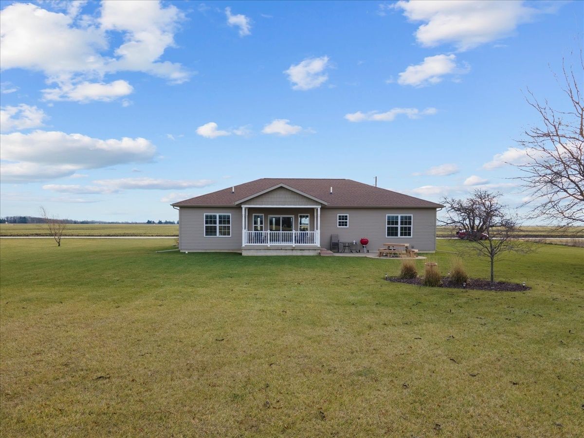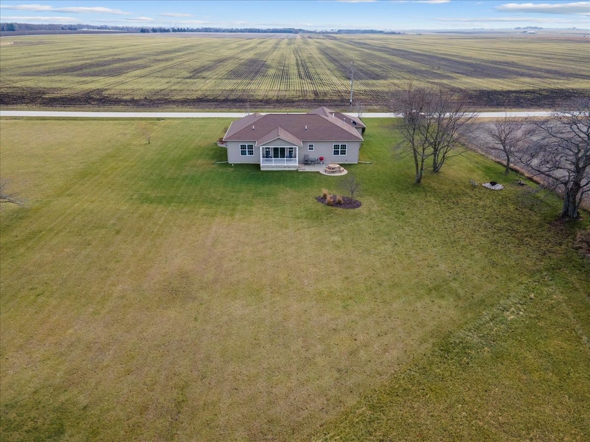 Immaculate 7 year old one-story 4 bedroom, 2.5 bathroom home with over 1800 square feet of living space and an attached 2.5 car heated garage. If you are looking for a rural property or a home located within a lake community, this property is a hybrid offering a taste both of those worlds. Located within the Lake Iroquois subdivision with access rights to the lake and all association amenities, this property sits on the far West outskirts on nearly 1 acre of land with rear access from the Arapahoe Lane cul-de-sac. The home provides an open floor plan for the living room, dining room and kitchen areas with features including 9 foot ceilings, Quartz countertops, kitchen island and decorative pillars. It has a split bedroom plan, with a master suite to the West with a walk-in closet and full bathroom including separate jacuzzi tub and cultured marble shower, and all other bedrooms to the East currently set up as 2 bedrooms and an office. A full bathroom with a tub shower is shared and located next to these bedrooms. The 2.5 car garage is nicely finished and versatile to be used for extra living space and family gatherings... fully insulated, drywalled and heated, with exceptional lighting and a water supply. Bonus features include: utility area from the garage with laundry, mud sink and guest half bathroom; covered front porch with sitting area; covered rear lanai for entertainment and country views; and an oversized lot for extra space and possible expansion.
