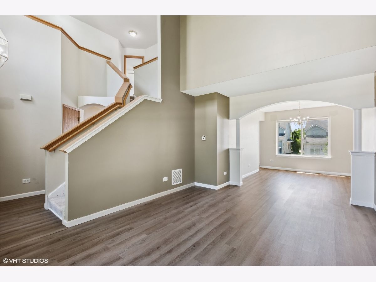 Love Romeoville! Beautiful East Facing 4 Bedroom 2.5 Bath Home in Marquette's Landing in Romeoville. Bonus, Plainfield Schools! Two story foyer upon entrance with New Vinyl plank flooring throughout the first floor. Living room and formal dining room lead into your kitchen with eat in area and sliding doors to deck over-looking your huge back yard. Kitchen overlooks your spacious family room. Stainless steel appliances and pantry. Half bath on first floor. Attached garage with mud-room upon garage entrance with extra storage cabinets. Going up your grand staircase...think of all the photo opportunities! Upstairs you'll find your attached primary full bathroom en-suite with a great walk-in closet and three additional generous sized bedrooms and another full bath for everyone's needs. This home also has a partial basement and additional huge above ground crawl space for all your storage needs and more space.
