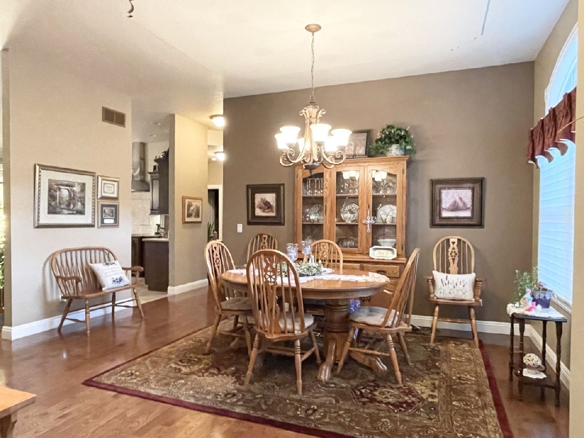 Quality one story home in this custom built home by a fantastic builder. The covered porch leads you to the open floor-plan with tall ceilings and gorgeous hardwood flooring in the dining room and family room. The kitchen has birch cabinetry, hard surface counters and all stainless steal appliances. Updates include new Lennox furnace and air conditioning 2022 and new water heater 2020. One of the cleanest homes you will find! The master bedroom has beautiful views of the back yard and includes a huge walk in closet and a spacious bathroom with a separate tub with jets from the over-sized shower. The other bedrooms are away from the master bedroom. The large laundry room includes a sink and a spacious closet off the garage. Off the foyer is an office that may be a 4th bedroom and it has a large walk-in closet. The basement is ideal for storage or for finishing with 2 escape windows and is plumbed for a bath. Lovely stamped concrete over-sized patio with a brick wall ideal for extra seating. Lush landscaping as well. Call today for your private tour!