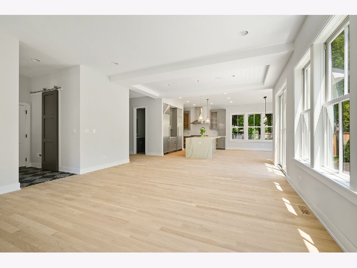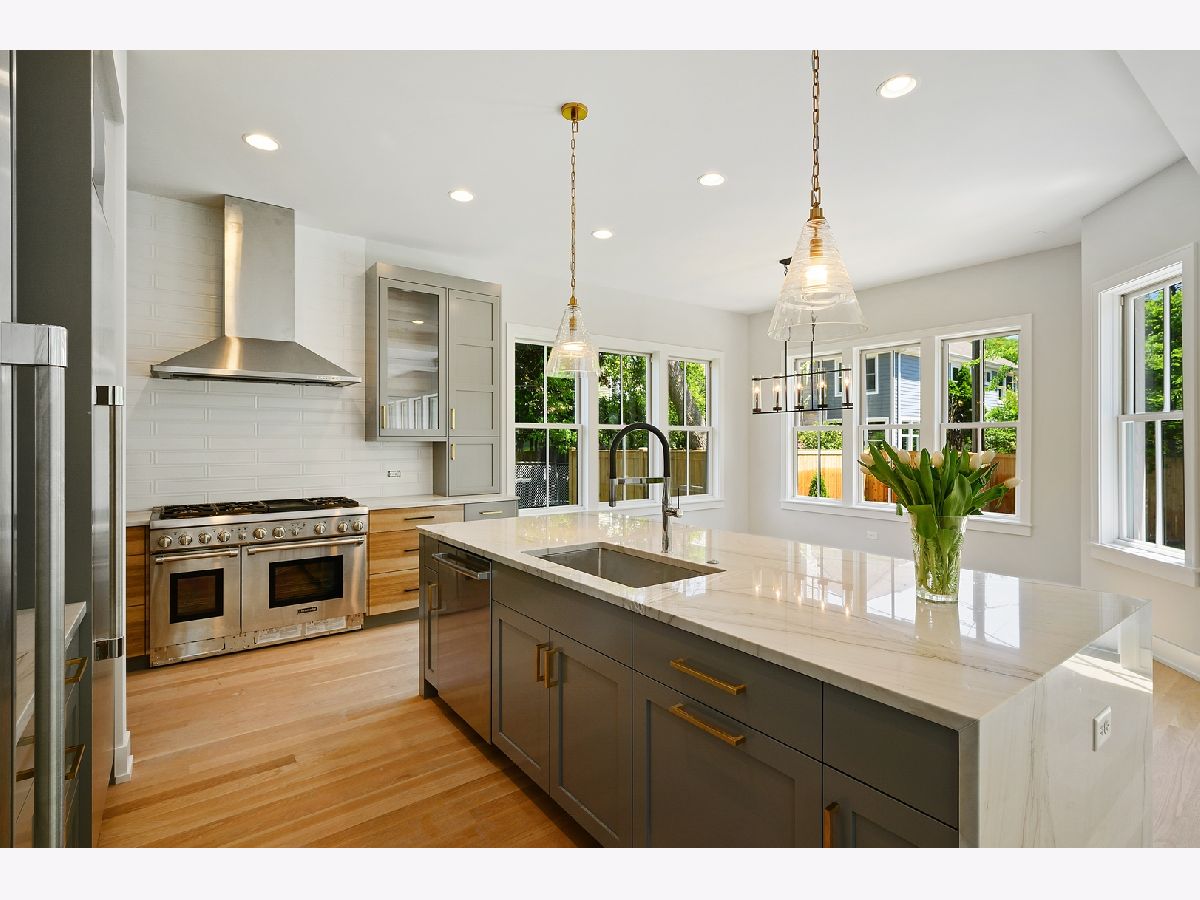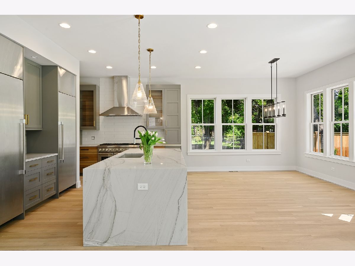 This is such a cool house! 3200 square feet of fabulous new construction with coveted attached garage in excellent location. Custom and designer finishes throughout. The first floor has 10' ceilings and the light filled front room with vaulted ceiling would be an excellent office or living room. The kitchen is stunning! Gorgeous 8'+ Mon Cheri quartzite island, custom cabinetry and all Thermador appliances including 60" refrigerator/freezer and 48" commercial oven. Large pantry and butler's pantry. The kitchen is open to the family room with custom fireplace. This incredible living space opens to fully fenced yard, including large brick patio and fire pit. Great mudroom off the attached garage. Hardwood floors on first and second floor. 4 bedrooms on the 2nd floor include the elegant master suite with 14' walk-in organized closet and sublime bath with "his & her" vanities. 3 additional good sized bedrooms on 2nd floor (one with en suit bath), large hall bath and laundry room. The basement provides the 5th bedroom and full bath and a huge family room with full bar. So many distinctive details everywhere you look: the beautiful stone in the window wells, the handcrafted turned wood & steel banister, the well placed barn doors and all of the light fixtures! Home includes Sonos system/wifi boosters. Walk to all schools & parks!