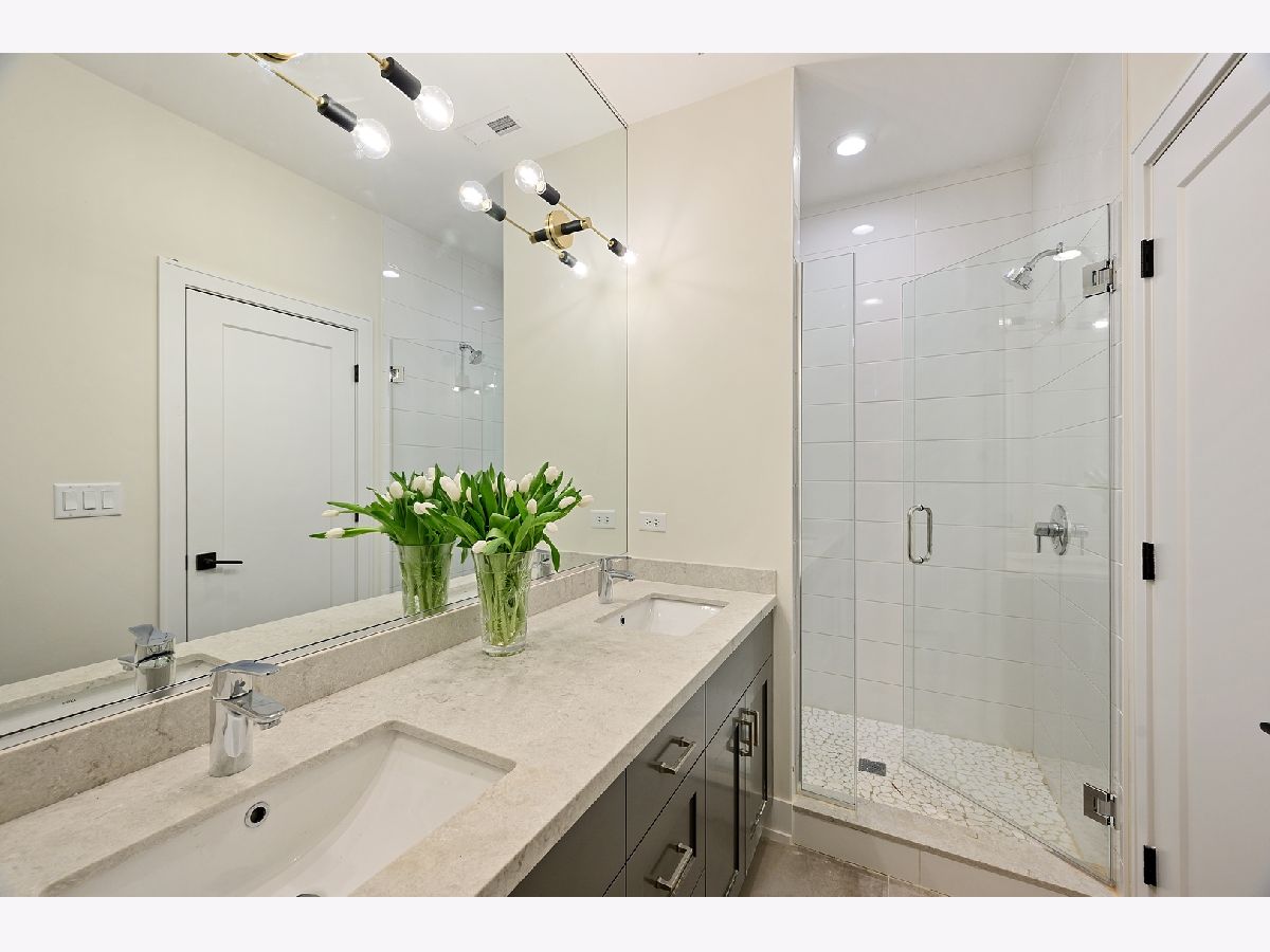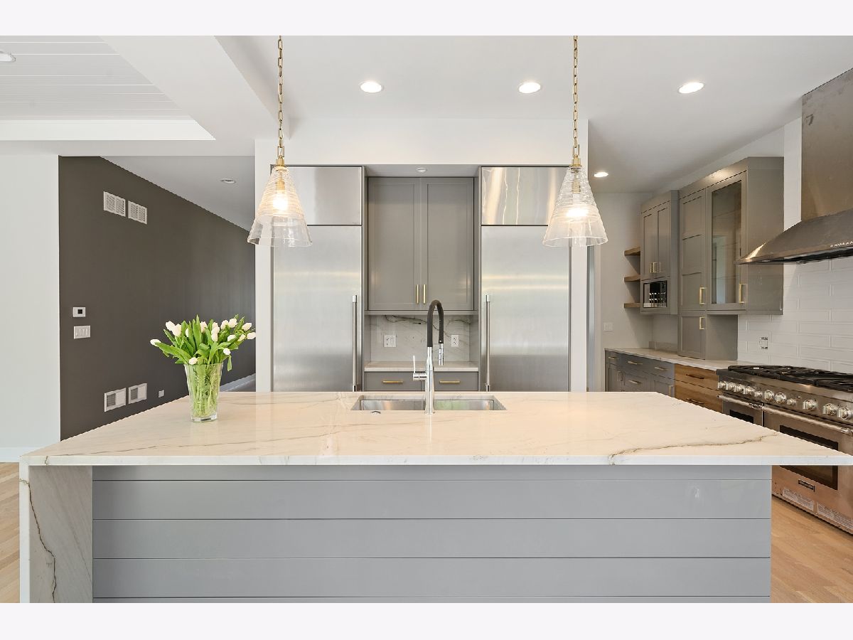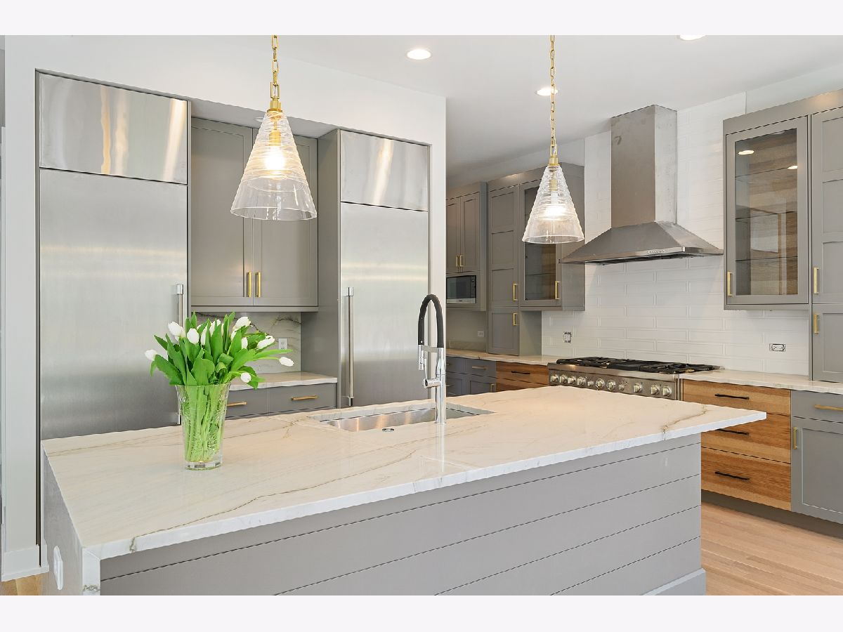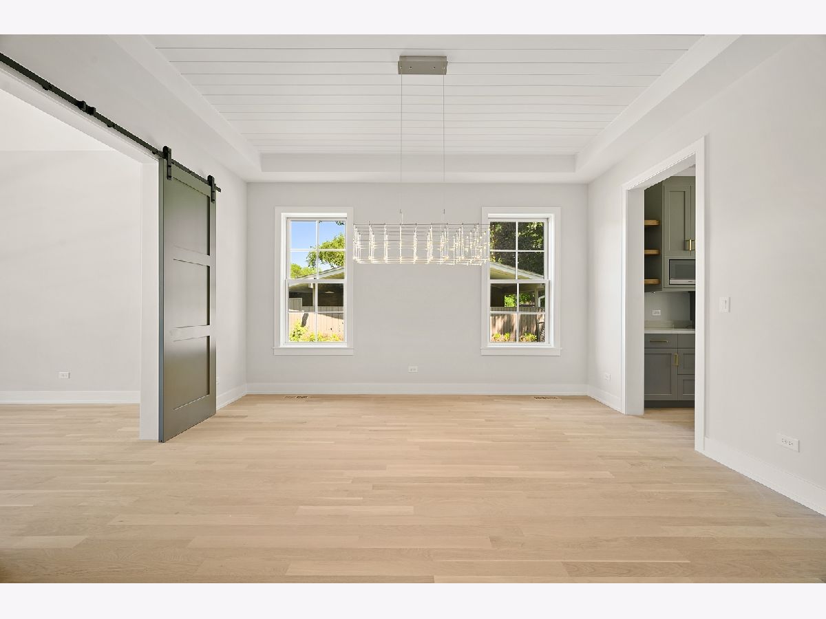 This is such a cool house! 3200 square feet of fabulous new construction with coveted attached garage in excellent location. Custom and designer finishes throughout. The first floor has 10' ceilings and the light filled front room with vaulted ceiling would be an excellent office or living room. The kitchen is stunning! Gorgeous 8'+ Mon Cheri quartzite island, custom cabinetry and all Thermador appliances including 60" refrigerator/freezer and 48" commercial oven. Large pantry and butler's pantry. The kitchen is open to the family room with custom fireplace. This incredible living space opens to fully fenced yard, including large brick patio and fire pit. Great mudroom off the attached garage. Hardwood floors on first and second floor. 4 bedrooms on the 2nd floor include the elegant master suite with 14' walk-in organized closet and sublime bath with "his & her" vanities. 3 additional good sized bedrooms on 2nd floor (one with en suit bath), large hall bath and laundry room. The basement provides the 5th bedroom and full bath and a huge family room with full bar. So many distinctive details everywhere you look: the beautiful stone in the window wells, the handcrafted turned wood & steel banister, the well placed barn doors and all of the light fixtures! Home includes Sonos system/wifi boosters. Walk to all schools & parks!