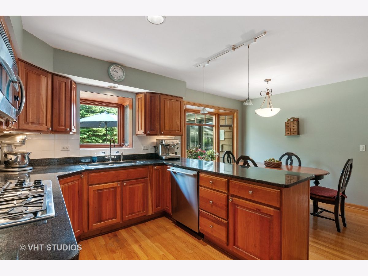 This expanded two-story home is ready and waiting for you! Beautiful hardwood flooring throughout foyer, living room, dining room, kitchen, den & 4th BR. The beautiful kitchen offers generous cabinet space, abundant granite counter top work space, a spacious pantry and wonderful eat-in area with a bay window overlooking the beautiful backyard. The expanded family room is the centerpiece of this home featuring a gorgeous fireplace, terrific wet bar, and french doors to living room. Triple sliding doors lead from the family room to the large brick paver patio, providing for amazing spaces both inside and out for relaxation and the entertaining we all look forward to resuming! Pocket doors and floor to ceiling bookcases make the first floor den a perfect space to work or study from home. 4th bedroom is also ideally appointed for a second home office. All bedrooms generously sized! 2nd bedroom offers walk-in closet with charming window seat. Updated cabinetry in master bath. Hall bath beautifully updated with beautiful cabinetry and decorator tiles. Finished basement is great space for exercise or play and even boasts a beautiful sauna providing your own personal spa without ever leaving home! Whole house 20 kva Generac generator provides peace of mind during storms/power outages. Fabulous location just blocks from award winning Pleasant Hill Elementary, Fremd High School and Birchwood Park! Make it yours today!