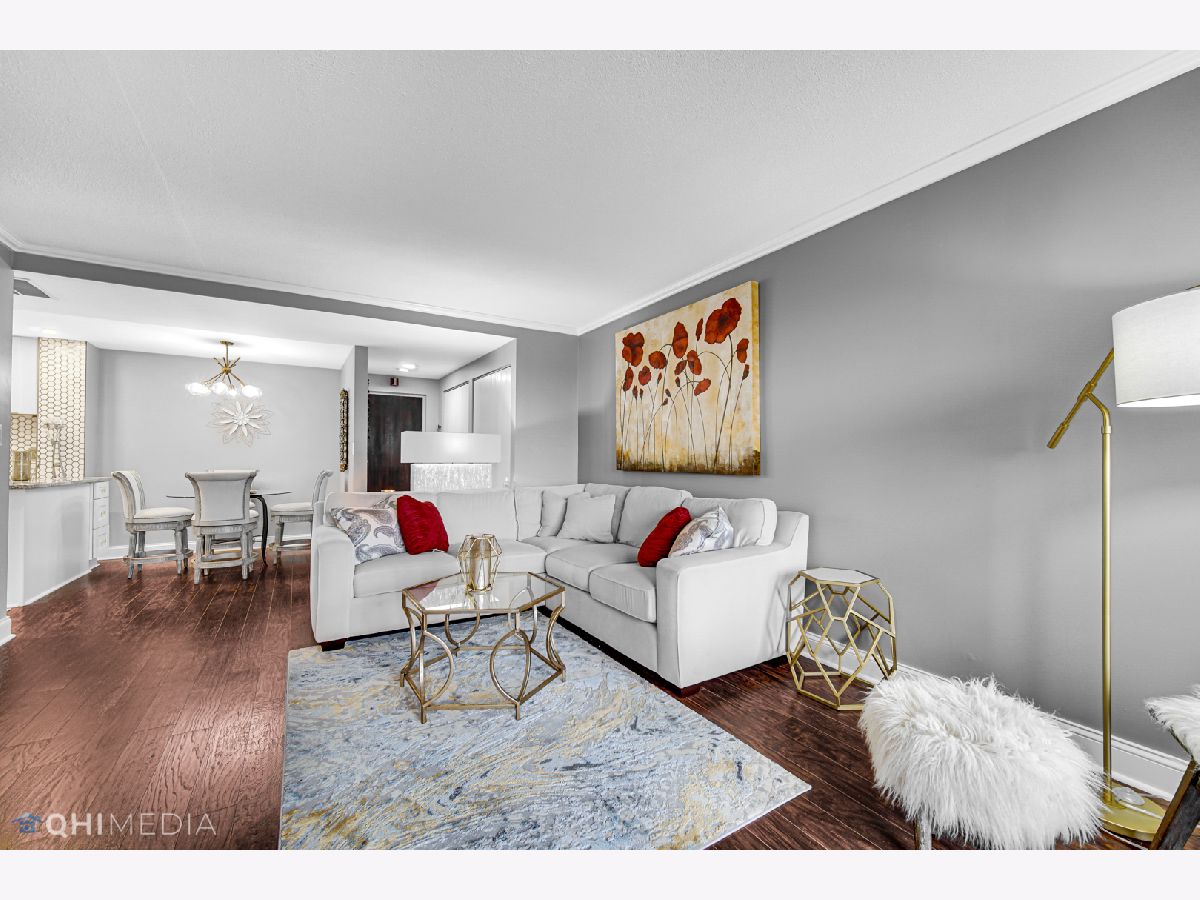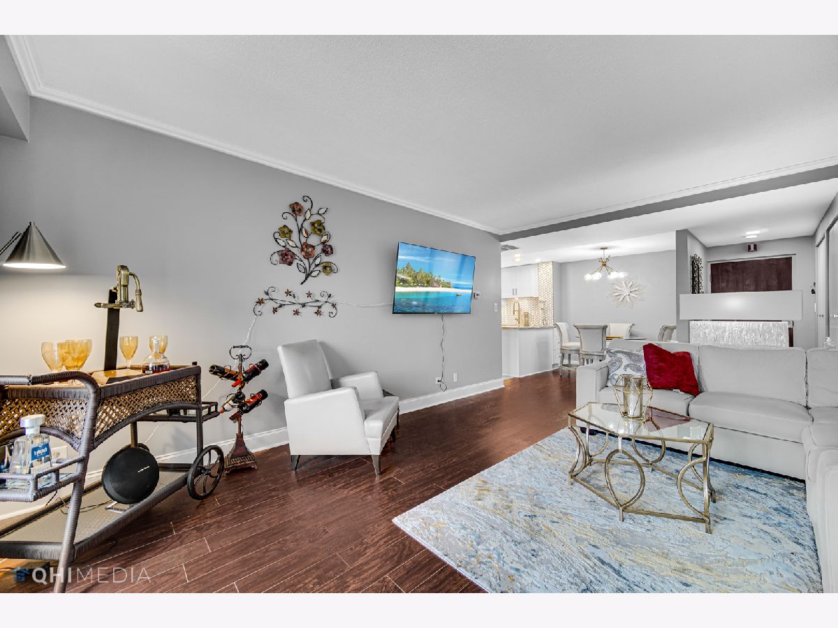 Gorgeous rehabbed unit with upgrades typically found in a luxury priced property. Kitchen features high end LG stainless built in convection oven, microwave and refrigerator, dishwasher. Beko ceramic cook top, vented range hood, LED under cabinet task lighting, Kohler fixtures and of course granite counter top and soft close cabinets. Luxury Vinyl Plank flooring throughout living area and bedrooms. Owners bath features wave glass tile vanity surround, 2nd bath vanity mirror features make up lighting, cell phone docking station. Both luxury baths are bluetooth enabled. The home is finished with 6 inch baseboard and crown molding in the living room and Primary bedroom. Premium garage space included. Conveniently located near transportation, shopping and restaurants. Building allows owner to have a cat, but no dogs.