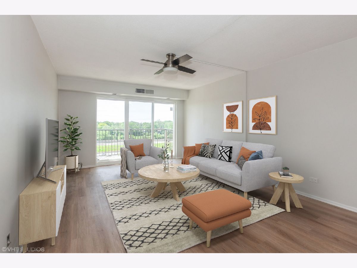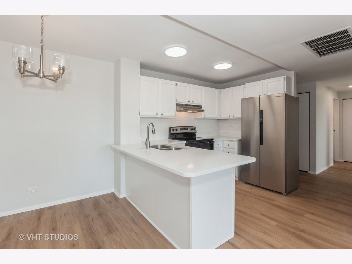 The Walnut Terraces in Downers Grove feature a beautifully updated Modern 2 bedroom, 2 full bath condo with 2 elevators. This unit offers so much with New patio door, 2 New windows, New wood laminate flooring, New plush carpeting in bedrooms, 3 New ceiling fans, New light fixtures, New outlets, New GFI's & New electric box in condo. The kitchen is a highlight with White & Grey granite counter tops making a breakfast bar, New stainless steel appliances and a cozy dining area. Open floor plan, this condo provides a comfortable and spacious living environment. It includes plenty of closet space, convenient laundry facilities on the same level, and a secure storage unit in the basement. Parking is hassle-free with exterior spaces and ample guest parking available. The location provides easy access to the highway for commuting to the city or anywhere in the Chicago land area. Near commuter train. Please be aware that rentals are limited to family members, and cats are allowed. Don't Miss Out!