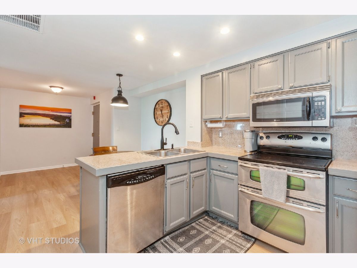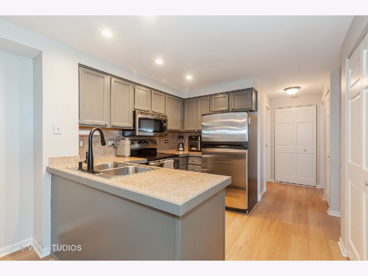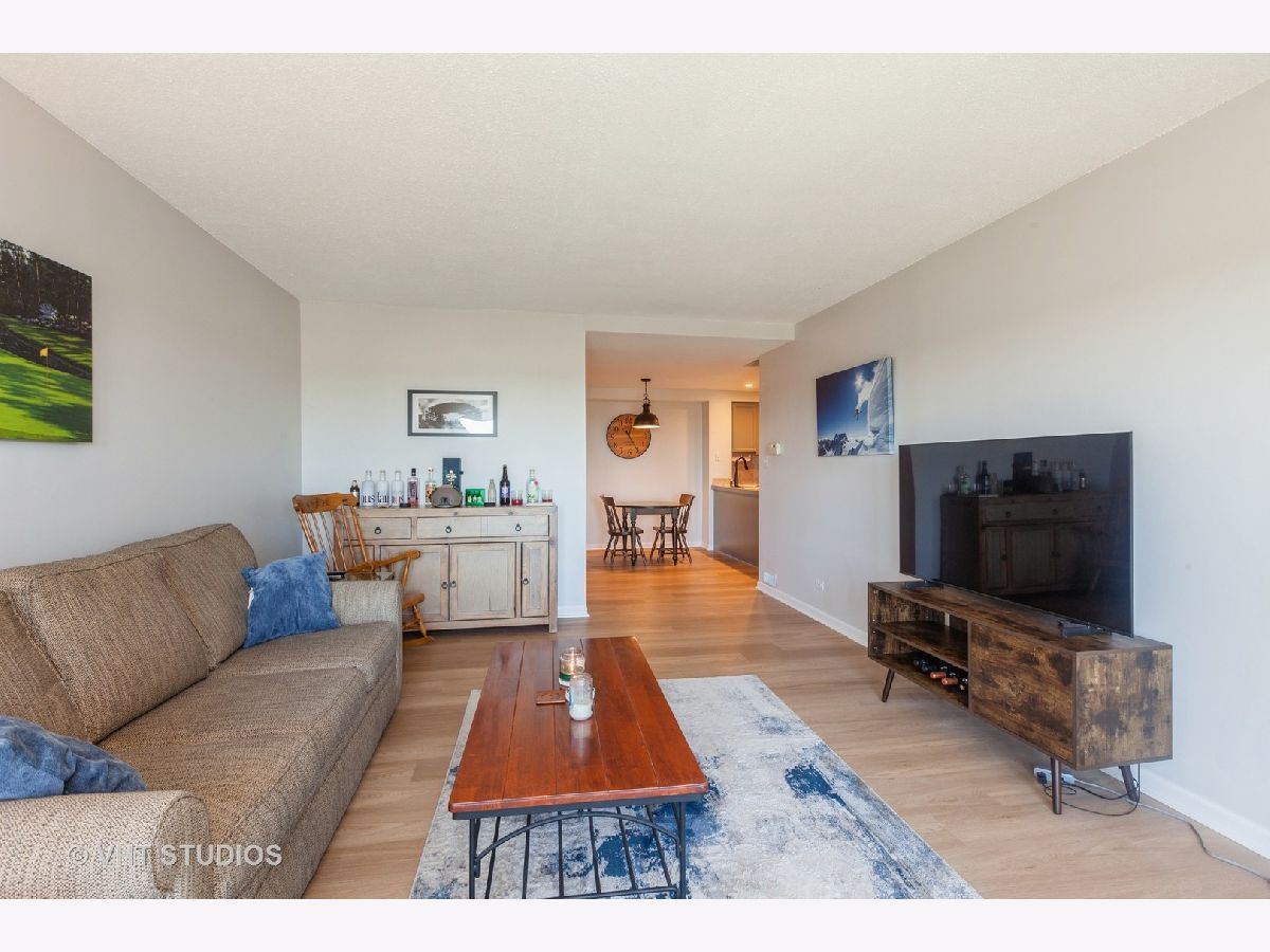 Enjoy stunning East views from this Penthouse End Unit, offering a clear sightline of the Chicago skyline on bright days. Spacious 2 Bedroom, 2 Bath with a coveted deeded indoor Garage PARKING SPACE #14! Inside, discover newer luxury plank vinyl floor throughout, two NEW patio doors, and window that invite natural light to fill the space. The OPEN kitchen and dining area are adorned with stainless steel Maytag appliances and two pantry closets and a coat closet in the entryway, making organization a breeze. Step into the living room with a balcony that offers panoramic views to the east, north, and south. The primary bedroom is a peaceful retreat with a second private balcony, a spacious wall of Three closets, and a private bathroom. The second bedroom also offers generous closet space for all your storage needs. For added convenience, laundry facilities are located just steps away on the same floor. Garage can be leased to others living in the building if you have no need. Extra storage space is available on the parking level, equipped with grocery carts for easy transport and Bike area. NEW ROOF on building November 2023. Seize this rare opportunity to own a piece of tranquility in the bustling city of Downers Grove. Easy access to I-355, I-88, Route 53, and commuter train!