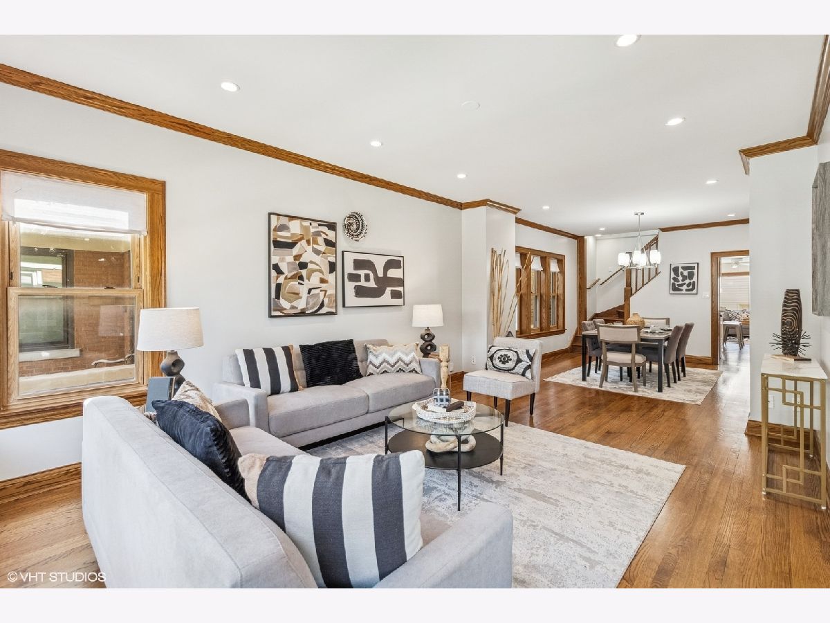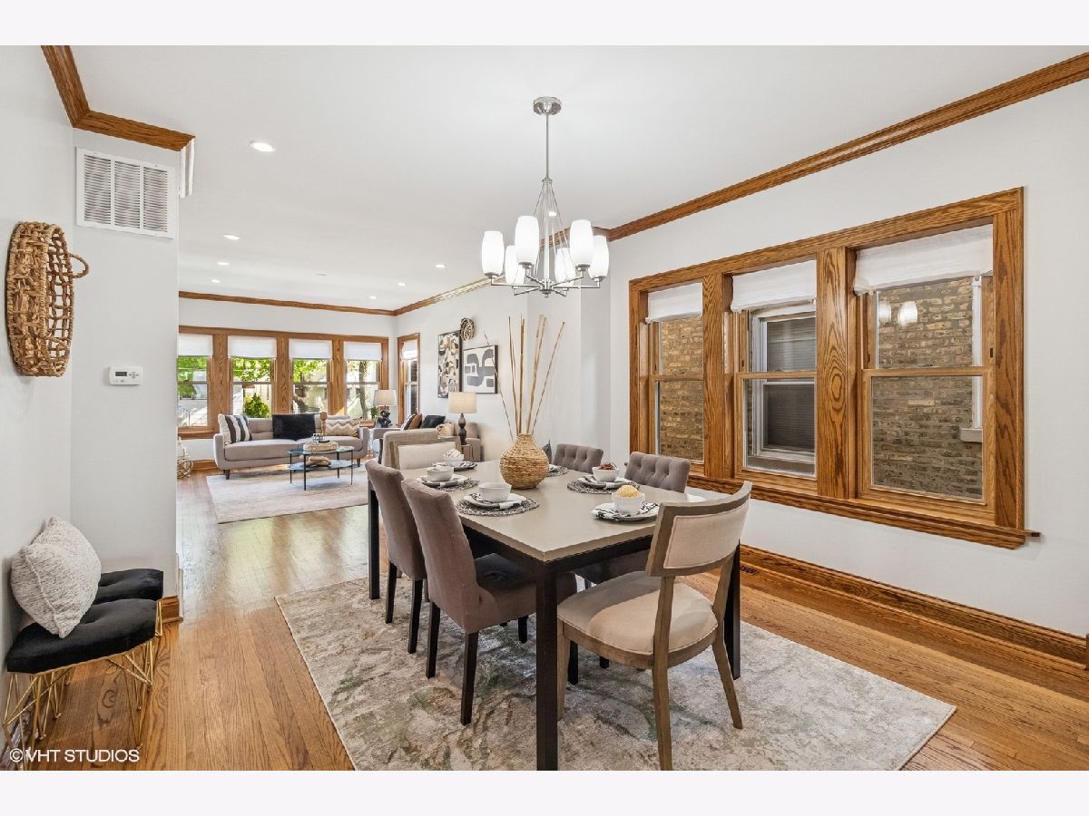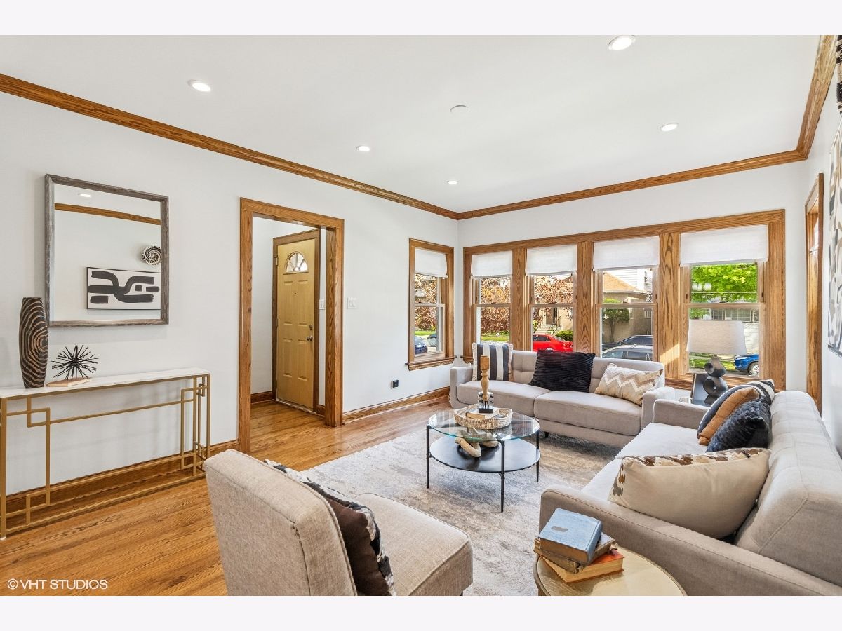 Bright and spacious bungalow in the heart of Portage Park. Just a few blocks to the park, this move-in ready, freshly painted 5-bedroom, 3-bathroom home showcases the timeless craftsmanship characteristic of classic Chicago bungalows while offering modern updates throughout. | Step inside to discover an open concept living and dining room flowing seamlessly together. The first floor features two bedrooms and a remodeled bathroom with marble tile and heated floors. The updated kitchen boasts white cabinetry, marble countertops, stainless steel appliances, and a rare walk-in pantry. An enclosed porch off the kitchen serves as a family room. | Upstairs, find an elegant ensuite bedroom with marble tiled bath and heated floors, an additional bedroom and separate reading nook round out the second floor. All closets are customized with the Elfa storage system, maximizing your storage space. | The fully finished basement houses a complete one-bedroom apartment with separate entrance-perfect as an in-law suite. A large laundry room and office area complete the lower level. Walk out to the inviting back yard, complemented by a newer garage, built in 2019, featuring a convenient party door. | Other key features include meticulously hand-stained oak woodwork throughout, elegant wood inlay flooring in the family room, and convenient dual-zone air conditioning system for customizable comfort. | This home represents the perfect blend of historic Chicago craftsmanship with thoughtfully executed modern conveniences, creating a space that's both character-rich and completely move-in ready. Portage Park offers a welcoming community atmosphere with tree-lined streets and easy access to restaurants, shops, and the expansive park itself. Listing Agent related to Seller.