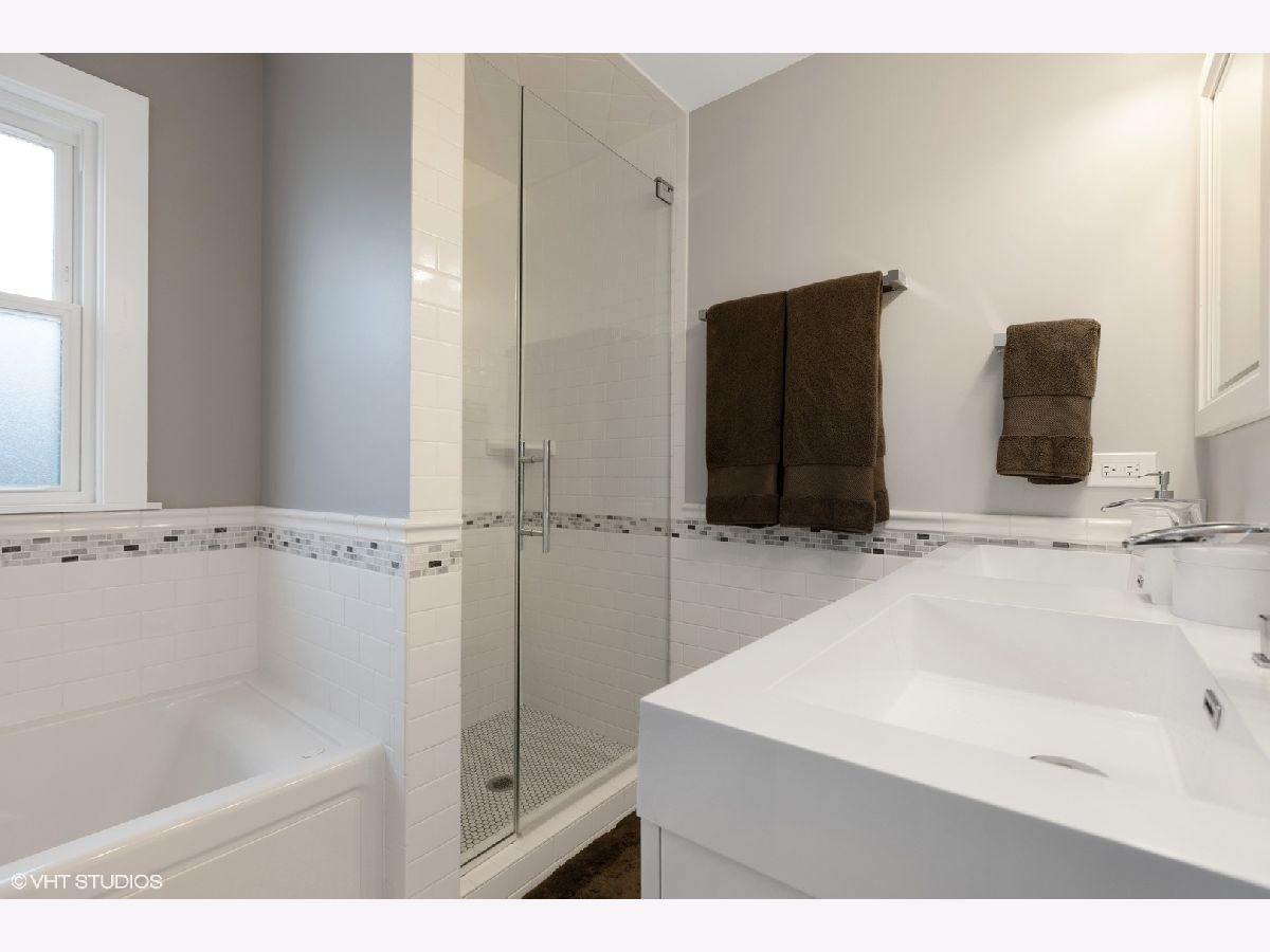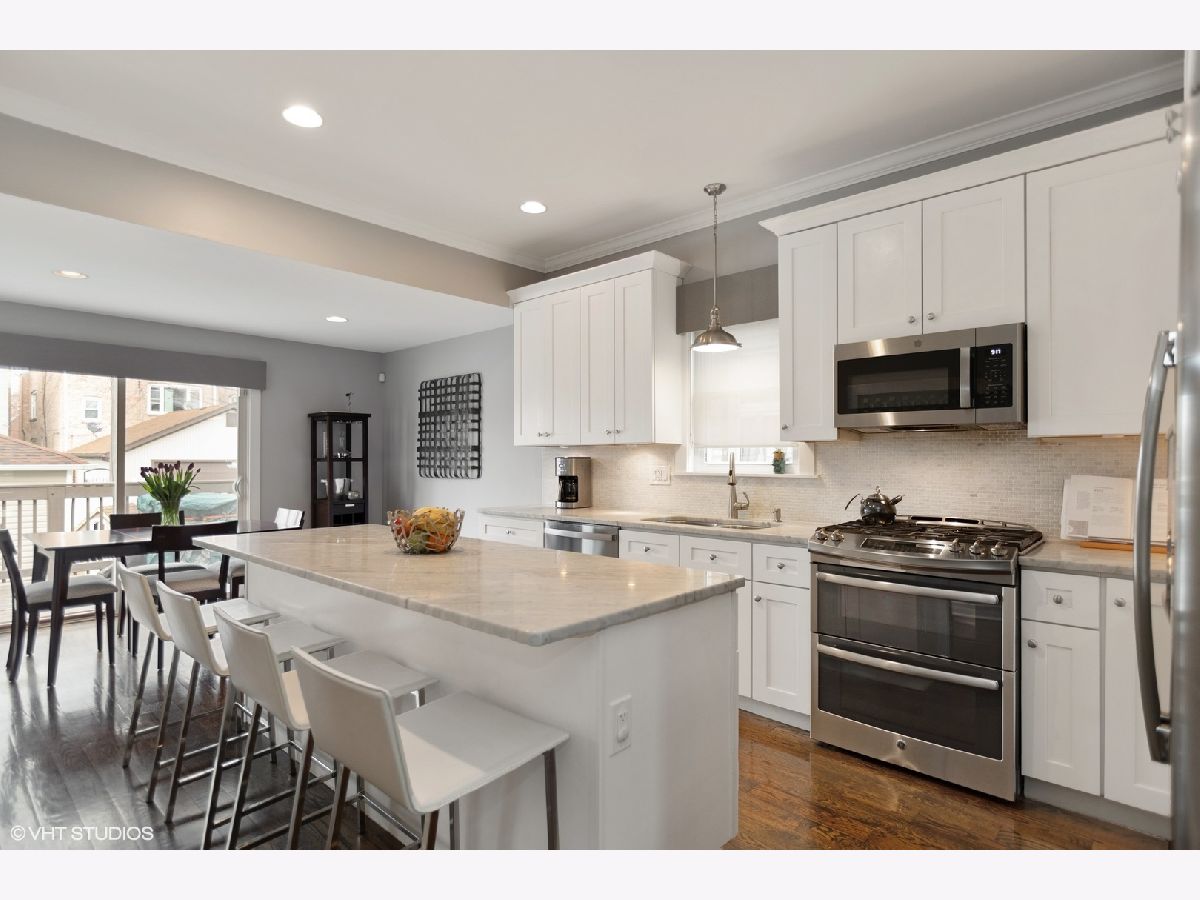 Welcome home to this fully renovated gem in Portage Park. Completely 'demo'd' down to studs, this 5 bedroom (all above grade), four full bathroom home will not disappoint. The entire main floor has been opened up to create a large, bright living, a rarely found formal dining space, and queen-size bedroom currently being used as a WFH office space and full size bath - a nod to those first floor primary bedroom buyers. The white, eat-in kitchen with stainless steel appliances, 42" cabinets and granite counters leads a curated mudroom area, large outdoor deck, manicured yard and 2 car garage - perfect for entertaining and play! The top floor-large enough to accommodate four large bedrooms, hosts a primary ensuite with dual vanities, separate tub and shower and three additional large bedrooms with plenty of organized closet and storage throughout. The lower level offers an additional living and play/recreation space, utility room with large capacity washer/dryer and a bonus flex room that can be used as an office, exercise or additional bedroom option. This home is completely turnkey with nothing to d but move in. Steps to Portage Park's walking paths, pool, playground and dog park and eateries abound, this home and location is a must see.