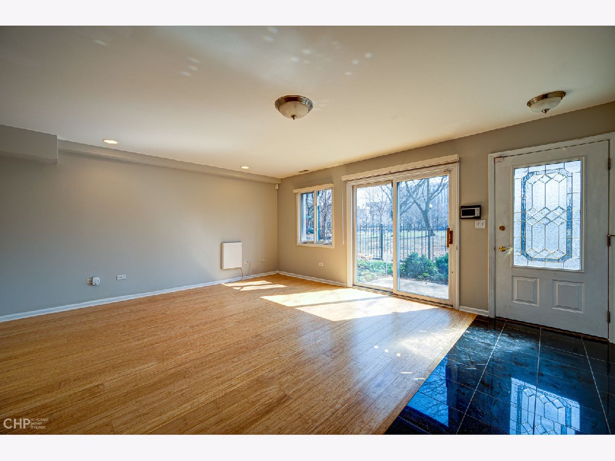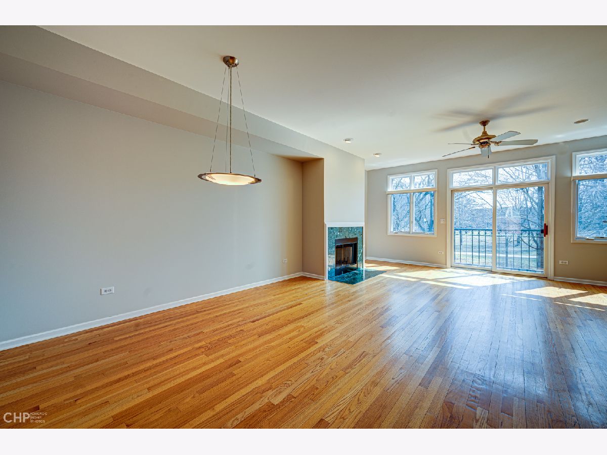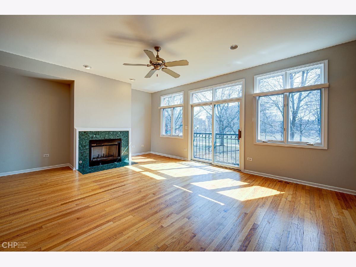 Built only 20 years ago, this exceptional light-filled, multi-level townhome is one of only seven in this highly desirable homeowners association. With a great Hyde Park location, just a few blocks from the University of Chicago campus, its extra-large, south-facing windows overlook beautiful and popular Stout Park, with its wide-open spaces, two playground areas, and even a sledding hill in winter. The entry level features a family room with two closets, a wet bar and an oversized two-car garage with a charging station. The main level has an open floor plan with a spacious living/dining area (with built-in cabinetry and a wood-burning fireplace), a generous eat-in kitchen with granite counters, a balcony for grilling outside, and a powder room. Upstairs, are two enormous bedrooms, one with a walk-in closet and an ensuite bath with double vanity and separate tub and shower. The second bedroom, formerly two smaller rooms, has two closets and can be restored to its original configuration, if desired (see floor plans for current and original layouts). There is a hall bath for this bedroom, plus a convenient washer/dryer. The top floor provides access to a large private terrace with stunning views of the park and University buildings. Prime location in walking distance to the University, Laboratory Schools, the shops and restaurants on 55th and 53rd Streets, and downtown transportation.
