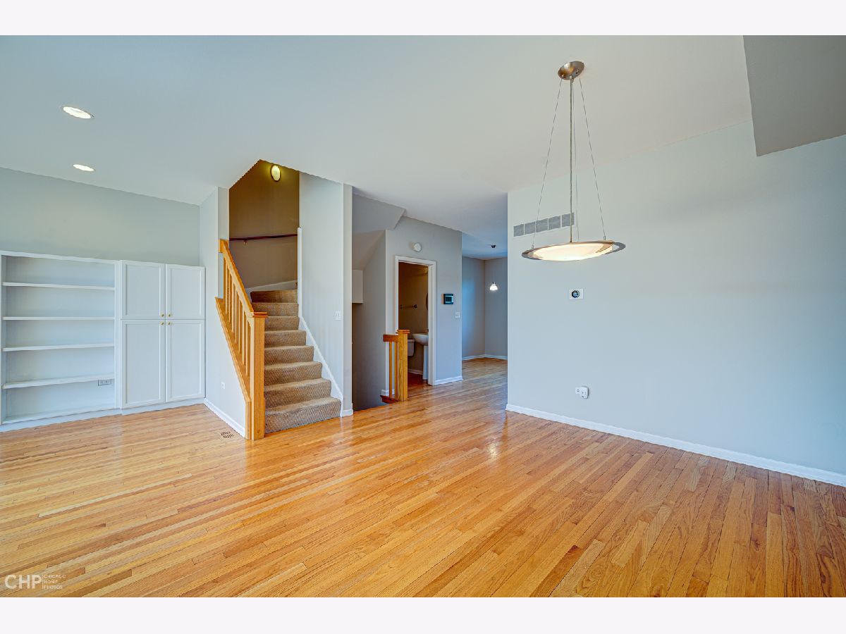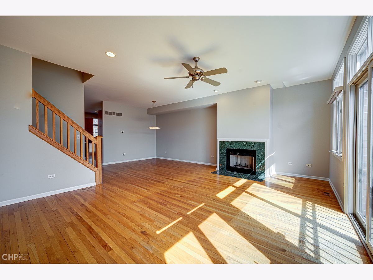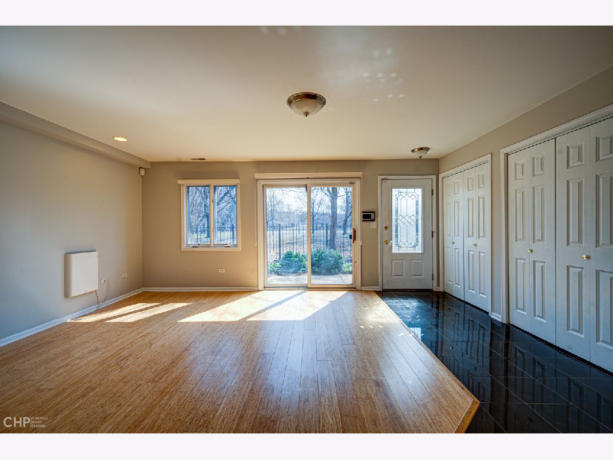Built only 20 years ago, this exceptional light-filled, multi-level townhome is one of only seven in this highly desirable homeowners association. With a great Hyde Park location, just a few blocks from the University of Chicago campus, its extra-large, south-facing windows overlook beautiful and popular Stout Park, with its wide-open spaces, two playground areas, and even a sledding hill in winter. The entry level features a family room with two closets, a wet bar and an oversized two-car garage with a charging station. The main level has an open floor plan with a spacious living/dining area (with built-in cabinetry and a wood-burning fireplace), a generous eat-in kitchen with granite counters, a balcony for grilling outside, and a powder room. Upstairs, are two enormous bedrooms, one with a walk-in closet and an ensuite bath with double vanity and separate tub and shower. The second bedroom, formerly two smaller rooms, has two closets and can be restored to its original configuration, if desired (see floor plans for current and original layouts). There is a hall bath for this bedroom, plus a convenient washer/dryer. The top floor provides access to a large private terrace with stunning views of the park and University buildings. Prime location in walking distance to the University, Laboratory Schools, the shops and restaurants on 55th and 53rd Streets, and downtown transportation.