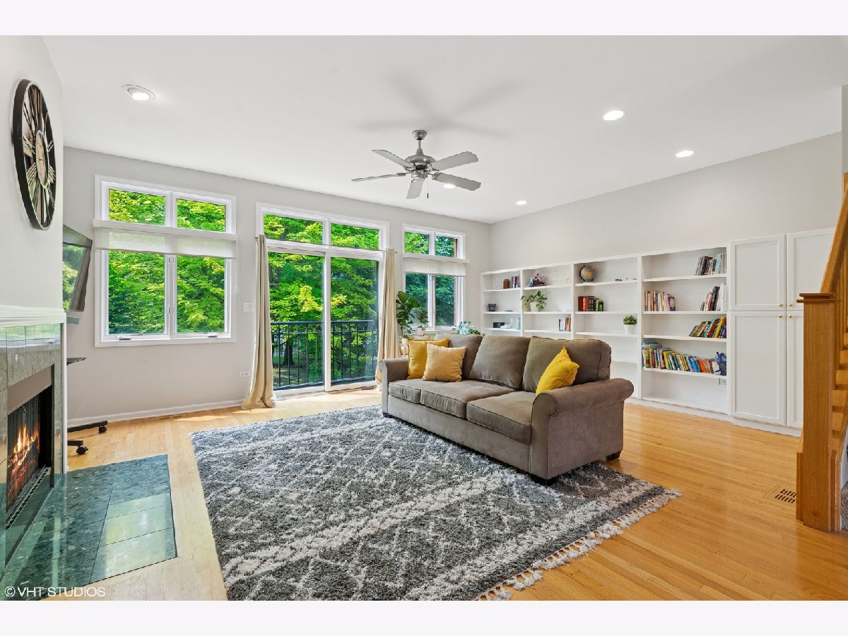 Enormous Hyde Park Townhome with 2400 interior SF, additional three outdoor spaces and two car plus garage. Overlooking gorgeous Stout Park literally outside your front door. Entry level is a big rec room, outdoor patio, generous closet space and wet bar hook-up along with direct access to your 2 car plus garage. On the main living level, views of the park greenery greet you from your living room. Beautiful gas starter/wood burning fireplace and built-in bookcases complete the room. Dining area that seats your largest dinner parties. Kitchen with tons of cabinets, spacious countertops, 2022/23 appliances, and large eat-in space. A convenient balcony off the kitchen is perfect for grilling. All served by a convenient half bath. Upstairs, the perfect king-sized primary suite with walk-in closet. The en suite bath has dual vanity, soaking tub, and over-sized shower. Two additional bedrooms are perfect for family or office. Big family bathroom. Convenient 2022 washer/dryer on the bedroom level too. The fourth level houses access to both a north and south roof deck with scenic park views. Recent improvements to the complex include partial main replacement, partial roof replacements and repairs, tuckpointing of brick facades and sealing of block facades. Close to the University, Green Line and Metra. Renter friendly.