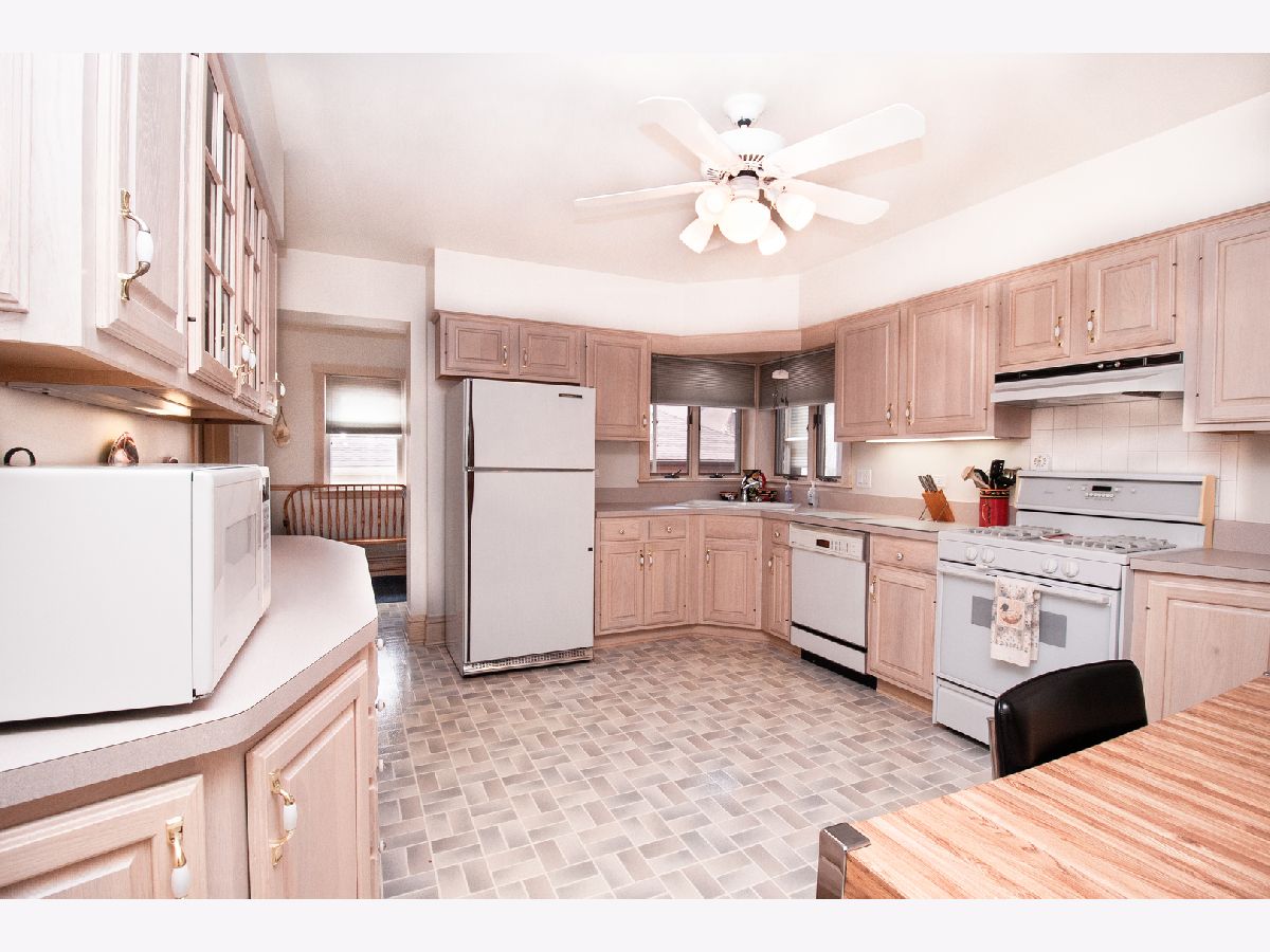 Oversized Portage Park brick bungalow with 3 bedrooms on the main floor. Enormous, formal dining room with custom built-in shelving, formal dining room, Big eat-in kitchen with plenty of cabinets, a custom corner window overlooking the yard opens to an enclosed, heated porch. Nicely landscaped yard with a patio and a 2 car garage. Unfinished attic ready for your ideas. Walking distance to Portage Park, grammar school and public transportation.
