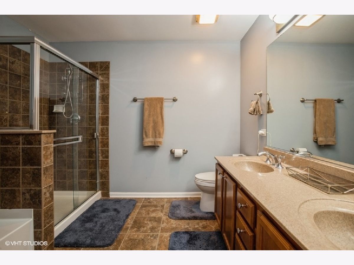 Largest unit in the subdivision. Gorgeous, mostly updated 3 level, 4 bedroom, 3.5 bath townhome with new dark stained wood floors and new carpet (2019) and vinyl floors (2020) in English basement. Spacious kitchen with large island, granite counters, stainless steel appliances, 42" cherry cabinets, new chandelier and pendant lighting and large pantry that opens to family room with gas fireplace. Ensuite master bedroom with spacious bathroom, dual sinks, soaker tub, separate shower, two closets (1 walk-in), and ceramic tile floor and surround. Two additional spacious bedrooms, full bath, and laundry room upstairs. 4th bedroom with its own full bath on lower level. All new comfort height toilets. New LED can lighting, fixtures, and fans throughout most of the home. Short walk to Mallard Lake bike/walking trails. Minutes to Bloomingdale shopping district with Marianos, Meijer, Woodmans, Target, and Walmart. Short distance to Hanover Park Train Station and 390 Expressway. Lake Park High School. Home Warranty is being offered.