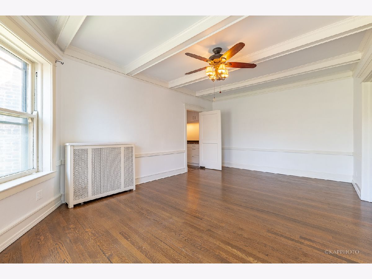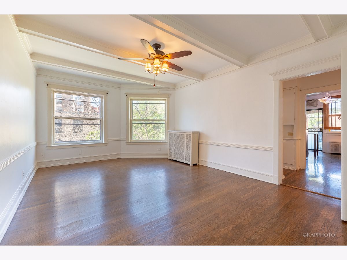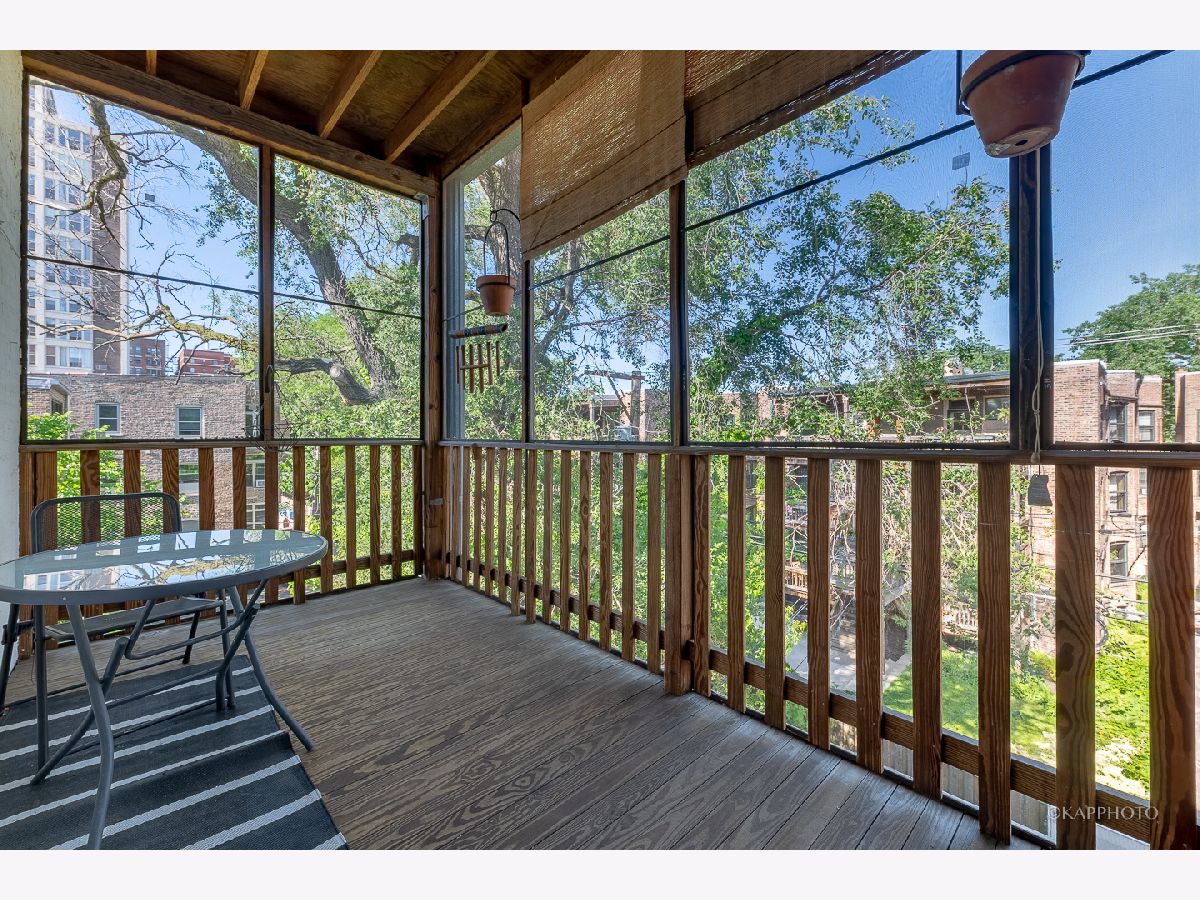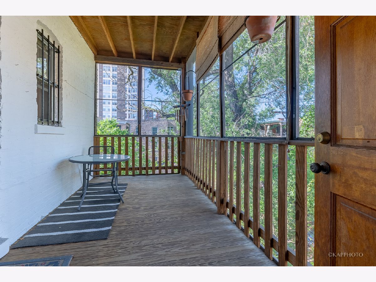 Welcome to classic vintage charm! Built in 1910 by architects Doerr & Doerr, this top floor, 3 bed | 2 bath co-op, is embraced by spacious living throughout. Step into the proper foyer from the brightly lit skylight staircase. The expansive front living area features a wall of windows with western exposures, a built-in bookcase, and 1 of 2 private outdoor spaces. Generously sized primary bedroom with en suite access. Designated dining room with a beamed ceiling - adjacent to the butlers pantry. The eat-in kitchen is fully equipped with granite countertops, a wine cooler and stainless steel high-end appliances. In-unit laundry. No shortage of storage with large closets and built-in cabinetry. The screened-in porch is nestled in the treeline - perfect for outdoor entertaining. Crown molding and beautifully maintained hardwood flooring throughout. Additional storage and bike room in the building. The building is situated near the lake, the University, public transportations, and downtown Hyde Park's local shops, restaurants and more. No pets. Welcome home!