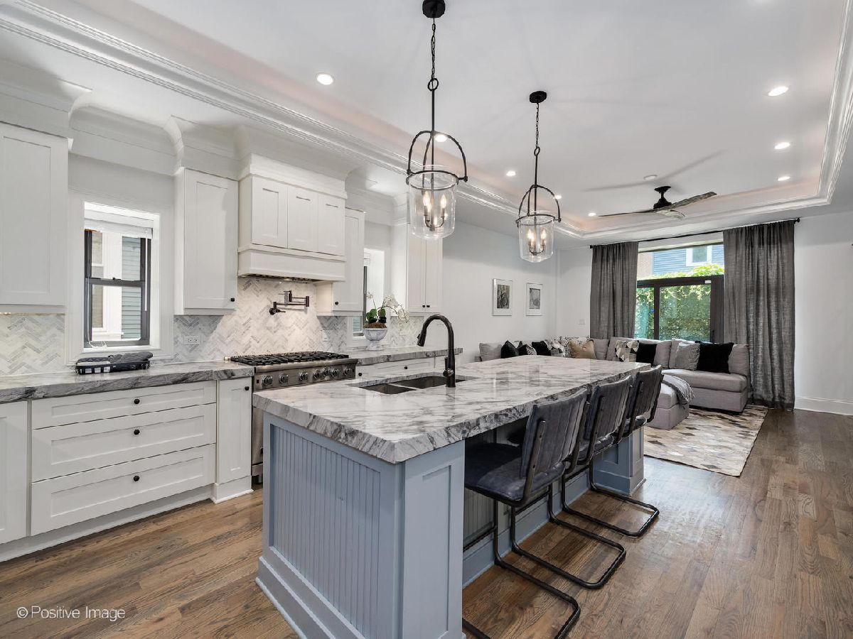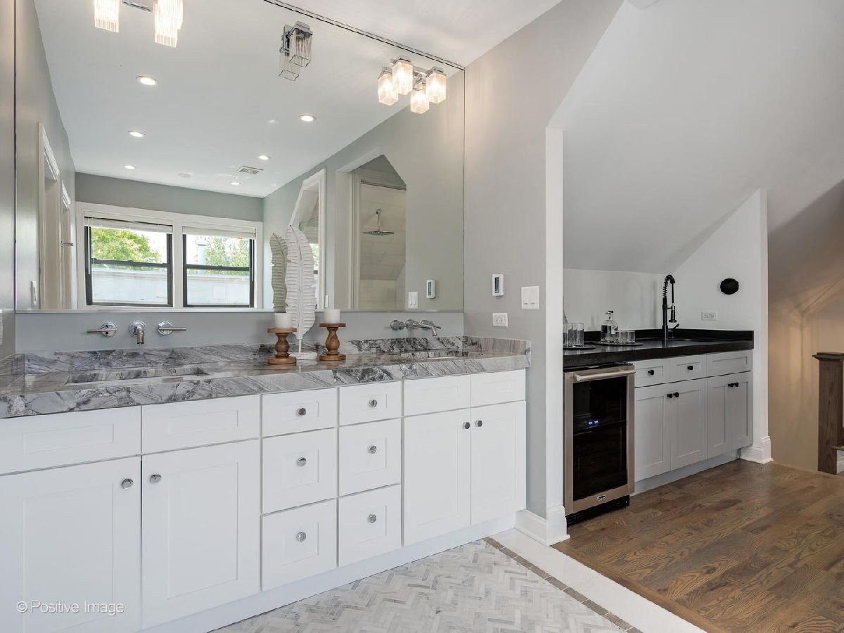 Welcome to your 6 bedroom, 4.1 bathroom dream home on a quiet tree-lined street in sought after Hyde Park! The grand curb appeal is the first thing you'll notice before entering and being greeted by real wood floors and a generous formal living room/dining room. The kitchen is fit for a chef with an oversized island, quartz countertops, Viking appliances, two toned cabinetry and open to the family room where you can walk out to your private deck. Heading downstairs you'll find a wet bar, living space, bedroom, bathroom and a private theater ready to host movie nights or to watch your favorite sporting events! On the second floor you'll find the first of 2 primary suites plus 2 additional bedrooms with a Jack and Jill bathroom. The second floor primary suite has a lavish ensuite bathroom with real stone, double sinks, water closet, an oversized walk in shower with body sprayers and a tub inside! The largest primary suite is a STUNNER that expands the entire 3rd floor and has amazing ceiling details. In addition to a king sized bed it includes a wet bar, a private living room plus a home office. The huge bathroom boasts real marble, a generously sized walk in shower with separate tub, double sinks and a water closet. The customs built walk-in closet is a closet for even the most discerning fashionista complete with room for an island, chairs or ottoman. All of the bathrooms feature heated floors to keep you super cozy in the winter! This home is perfectly located just 10 minutes from downtown and is within walking distance of the University of Chicago campus as well as the highly rated University of Chicago Laboratory Schools. You're also less than 2 blocks from the revamped 53rd street where you'll find grocery stores, night-life, distinctive restaurants and cafes. Super easy access to the lake, tennis-courts, parks, and museums make this neighborhood and home a must see!