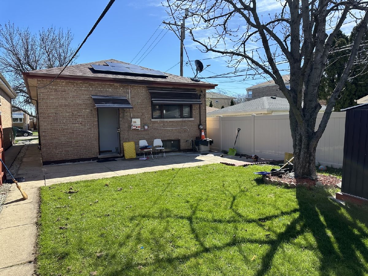 Welcome to this beautifully remodeled bungalow in the desirable West Elsdon area! This charming home boasts 3 bedrooms and 2 full baths, offering ample space for comfortable living. Step inside to discover hardwood floors throughout, creating a warm and inviting atmosphere. The remodeled (2023) bathrooms features Bluetooth-enabled exhaust so you can listen to music while taking care of business. The full basement provides additional storage or potential for customization according to your needs, complemented by a convenient walk-in closet. Outside, you'll find a shed and a 2-car garage, providing plenty of room for parking and storage. The sum pump offers peace of mind during rainy seasons, ensuring a dry basement. With a roof that's only 8 years old, you can enjoy worry-free living for years to come. Conveniently located just minutes from the Orange Line and less than a mile from Midway Airport, this home offers easy access to transportation. Plus, you're just minutes away from shopping centers and malls, making errands and entertainment a breeze. Don't miss out on this fantastic opportunity to own a remodeled bungalow in a prime location. PROPERTY IS EQUIPT WITH SOLAR PANELS WHICH WILL NOT BE REMOVED, LEASE WILL TRANSFER OVER TO NEW OWNERS. SELLER IS WILLING TO GIVE A CREDIT OFF ASKING PRICE FOR THE LEASE TRANSFER. Schedule your showing today!