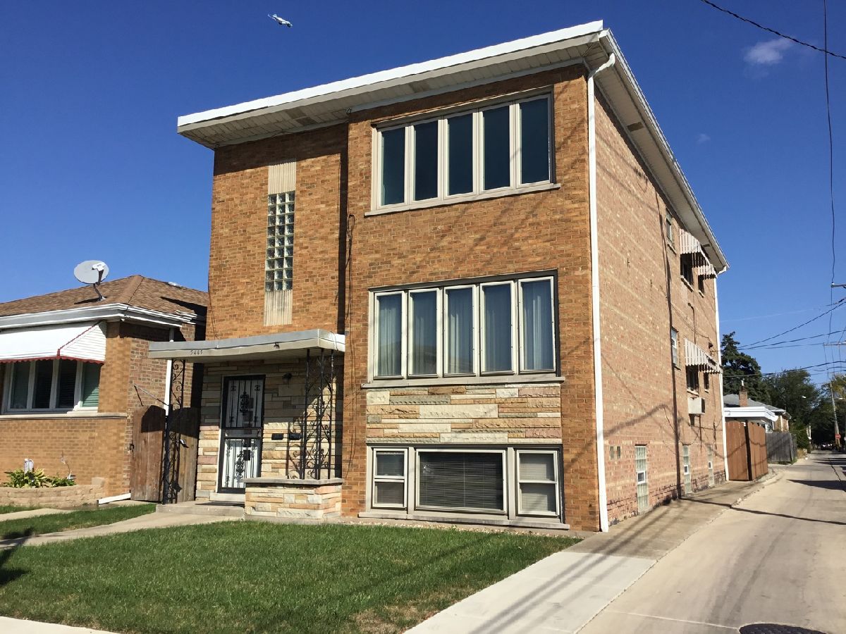 Highest & Best due Monday 10/14 @ 5PM. Multiple offers received. Large West Eldson/Midway area all Brick Two Flat! Building is almost 2500 square feet plus a finished basement! Each unit is over 1200 Sq. Ft. and offers 3 bedrooms ...large eat in Kitchens and Roomy Living Rooms! Hardwood Floors! Basement offers front and rear access. Windows and doors approximately 15 years. Hot water baseboard heat with 2 zones. Second floor has air handler for central air conditioning. Large over-sized 2 1/2 car garage. Private yard with privacy fencing on both sides and concrete Patio. Excellent location near Orange Line, Archer Avenue, public parks, shopping and Dining. Estate Sale selling As Is.
