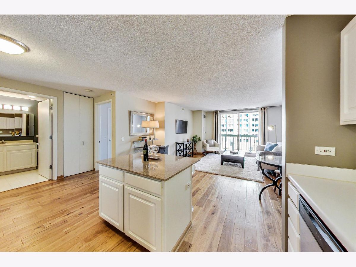 Spacious one bedroom in the heart of River North! This condo features an open concept floor plan with plenty of room for living, dining, and work from home. The expansive living space opens up to a large private west facing balcony with city views. The kitchen features white cabinets, stainless steel appliances, and an island with granite counters. The bedroom suite comfortably fits a king size bed plus a huge walk-in closet! The building has A+ renovated amenities: pool, gym, basketball courts, dog run, entertainment rooms, sundeck, business center and more! Amazing location close to transportation, restaurants, shopping, attached grocery store, nightlife, and entertainment. Rental parking additional.