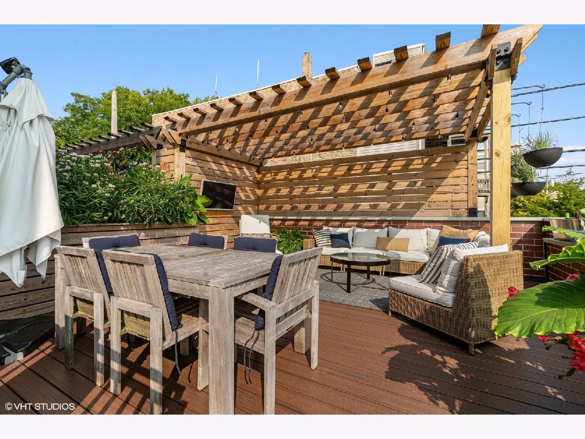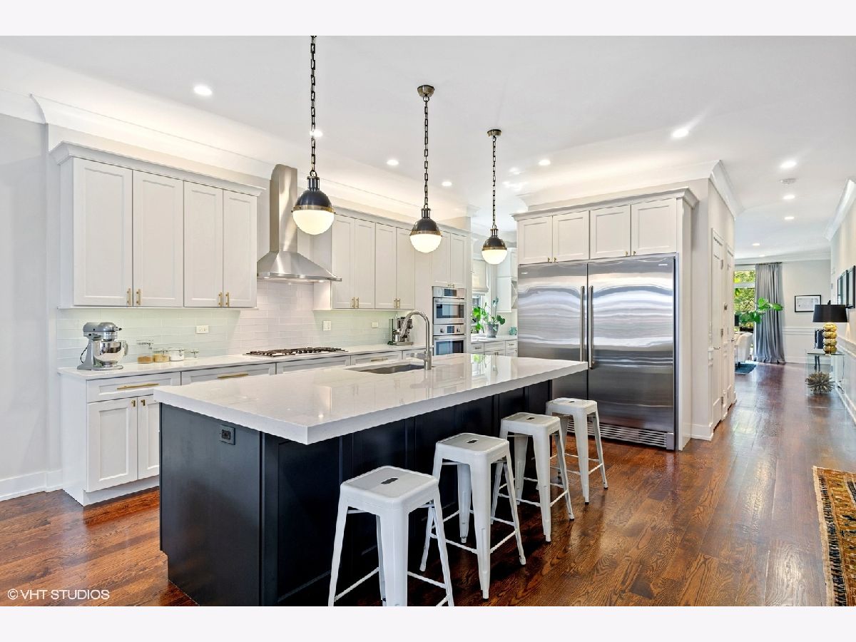 Stunning and spacious duplex home in Andersonville! This wide and deep floorplan offers a ton of space, with amazing high-end finishes throughout! 4bedrooms, living room and family room, 2 decks AND a private roof deck over the garage. The main level features 10' ceilings, 8' doors, 4" oak flooring, and crown mouldings. Large front living/dining room has a gas start/wood burning fireplace, sliding doors to the covered front deck, and dining space for 6-8 people. The floorplan has maximized the width and provides for a very functional and beautiful butler's pantry adjacent to the dining area. The sunny butler's pantry has a prep sink, extra cabinets/storage, and a wine fridge. The back 1/2 of the floorplan has an enormous high-end kitchen and family room, which opens with sliding doors directly to another deck and the private roof deck over the garage. Many homes claim to have a chef's kitchen, but this is the real deal! No more bottom freezer fridges here....this home features the ultimate fridge set up with side by side Electrolux 32" wide refrigerator and a 32" wide freezer! There is also a Bosch wall oven with additional microwave/convection oven, and a 36" Bosch gas cooktop and a Bosch dishwasher. The kitchen features gorgeous 42" white cabinets, Quartzite counters, glass tile backsplash, over and under cabinet lighting, oversized kitchen island has seating for 4, and there is a pantry closet in addition to the butler's pantry! There is a breakfast area, currently used as a play/craft area, located opposite the kitchen. The family room is wide and easily fits a large sectional couch, has a gas start/woodburning fireplace, and doors to the rear deck space, which has stairs leading directly to the private roof deck. Roof deck has trex decking and a pergola to offer shade and privacy as you relax and take in your beautiful and serene setting! The lower level has 9'2" ceilings and all heated floors. The 4 spacious bedrooms include an over-sized primary suite with large walk-in closet and a luxurious primary bath featuring walk-in steam shower with a bench and rainhead, heated floors, double vanity, and soaking tub. Bedroom 2 is en-suite with a double vanity bathroom that also has access from the hallway. Large 4th bedroom is currently used as an exercise room. Laundry room with side by side washer/dryer and utility sink, and many closets for storage in the lower level. All closets have been professionally organized, and after their purchase the sellers did many improvements such as: installed new vinyl flooring in the bedrooms, all new light fixtures, window treatments including blackout blinds in the bedrooms, installed the pergola on the roof deck, and painted the kitchen island! 1 car garage parking included, and storage under the back deck. This is an amazing location, in Edgewater's Andersonville neighborhood, a couple blocks to Clark street shops and restaurants such as Lady Gregory's, Hopleaf, Lost Larson, Calo Ristorante, Little Bad Wolf, Coffee Studio, and Dollop Diner. Also close to Lincoln Square, only 1 mile to the Bryn Mawr Red Line; close to Half Acre, Spiteful, and Urban Renewal breweries; and a new Metra stop is being built at Peterson! Prepare to be impressed with the size and quality of this home!