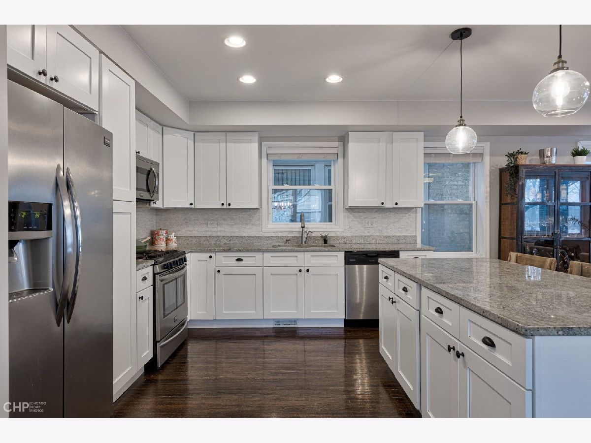 Fantastic bungalow renovation on a quiet street. Enter the property and you are greeted by a formal foyer with coat closet. Enjoy the open concept space with massive kitchen - featuring white counters with gray counters and stainless appliances. Ample storage and workspace sure to please the casual cooks. Gracious island for additional counter space and informal seating. Dedicated dining space and massive living room with south facing windows and amazing natural light. Main floor office/bedroom and sunroom. Rear entrance has access to deck and features a mud room space. 2nd floor offers 2 guest bedrooms and a stylish guest bath. The primary bedroom is large with walk in closet. Luxurious Primary bath has dual vanity, tub and separate shower. Lower level has a massive family room with oversized mechanical room / storage. Corner lot brings light from all angles. Large yard with 2 car garage. Walkable to public transportation, entertainment and parks. Come tour your new home!