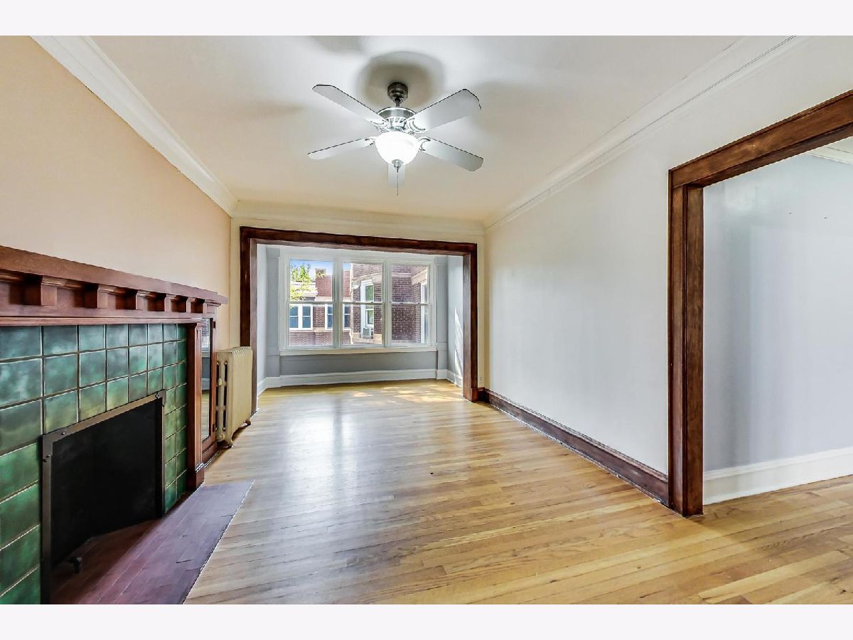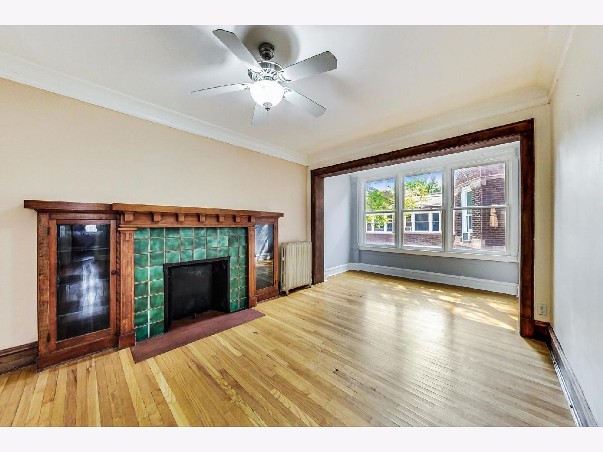 Charming vintage coop apartment ideally situated in the heart of Hyde Park. Enjoy the amazing light and treetop views from this spacious top floor unit in one of Hyde Park's most enduring and esteemed coop buildings. There is a really wonderful community feel in this courtyard building, plus amazing access to restaurants, shopping, many bus lines and the University of Chicago campus. All are within easy walking distance - plus a Starbucks 1/2 block away - from this oversized apartment that features 1 bedroom, 1 bathroom, a formal dining room (could convert to a 2nd bedroom), glorious sunroom, plus a spacious living room, eat-in kitchen and a large bedroom that easily fits a king bed. Hardwood floors throughout, including in large living room with crown moldings, decorative fireplace with bookcases on each end, plus vintage tile surround. Great southern light, with additional windows facing west and north from this corner unit. Spacious kitchen with custom wood built-ins and access to small private rear deck. Large bedroom with large closet, and plenty of additional storage throughout the unit. 9'+ ceiling height throughout, accented by all newer windows in this unit! Building did new roof, tuckpointing and parapet work in 2020 (project is done and fully paid for). Back decks replaced in 2012. Common laundry room (coin-op), plus a large designated storage locker and bike room in the basement. Radiator heat, cooking gas, water and property taxes are included in the very reasonable monthly assessments. Professionally managed and extremely well-maintained building. Active and involved owner-occupants are very much desired by this board. Renting your unit is highly discouraged and financial penalties are charged to owners who do. No investors. Pets allowed! Board interview & references required.