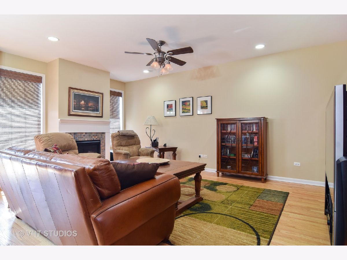 Buyer unable to get financing so bank on the market! Fabulous two story townhome nestled off the busy street yet easy access to Metra, restaurants and shopping! Beautiful hardwood flooring throughout the main level! Open dream kitchen has stainless appliances, tons of cabinets and granite counterspace, canned lighting, and breakfast area! Spacious living room room has a beautiful fireplace, canned lighting and ceiling fan! Dining room opens into the living room - great floorplan for entertaining! Huge master suite has a luxurious private bath with a double sink, granite countertops, separate shower and large soaking tub! Generous basement has plumbing rough-in! Two additional large upstairs bedrooms plus loft! Handy second floor laundry! Neutral decor! Sprinkler system! Attached racks/shelving in garage and wooden storage racks in basement stay! What a gem! Photos previously taken when owner occupied. Refrigerator "as is".