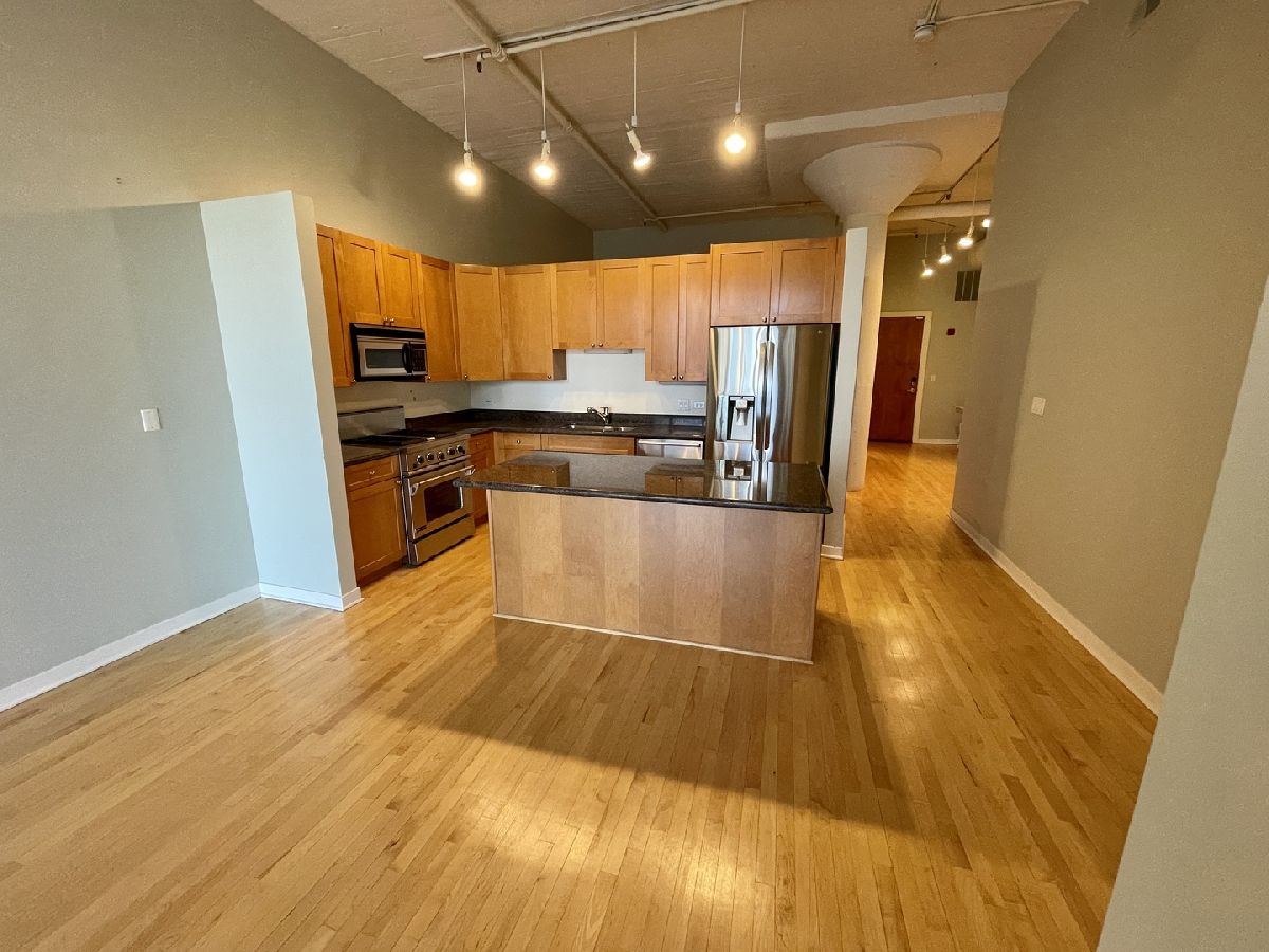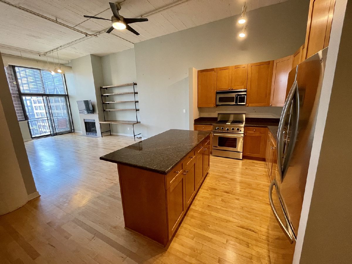 Huge Printers Row 2BR/2BA Loft in boutique condo building priced to sell! This fabulous city home boasts a bright open floorplan, with soaring 12' concrete ceilings, solid maple hardwood flooring throughout, an updated kitchen with maple cabinets, stainless steel appliances, and granite countertops. Extra-large split floorplan with 2 generous sized bedrooms, a comfortable balcony, gas fireplace, custom bookshelves, and a side-by-side washer & dryer. Current owner has installed soundproofing in unit which includes soundproofing windows and sliding glass doors. Your clients will fall in love with this fabulous loft! Convenient Indoor heated parking Space #32, (located on the 2nd floor), available for an additional $30K. The Harrison Street Lofts Feature; Onsite Exercise Room, Individual Storage Lockers, and Bicycle Storage. The monthly assessment includes RCN Cable TV and Hi-Speed Internet. Conveniently located Just steps to; The Chicago Loop Business District, Grant Park, Lakefront, All CTA Trains & Buses, Commuter Trains, Divvy Bikes, ZIP Cars, The Roosevelt Collection Mall, ICON Theaters, Starbucks, Target, Mariano's, Trader Joe's, and Many Entertainment, Dining, and Shopping Options. Showings via FaceTime available!