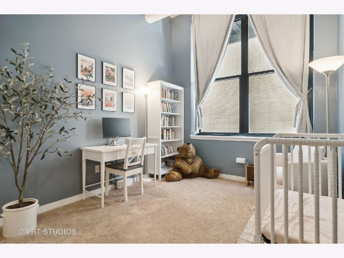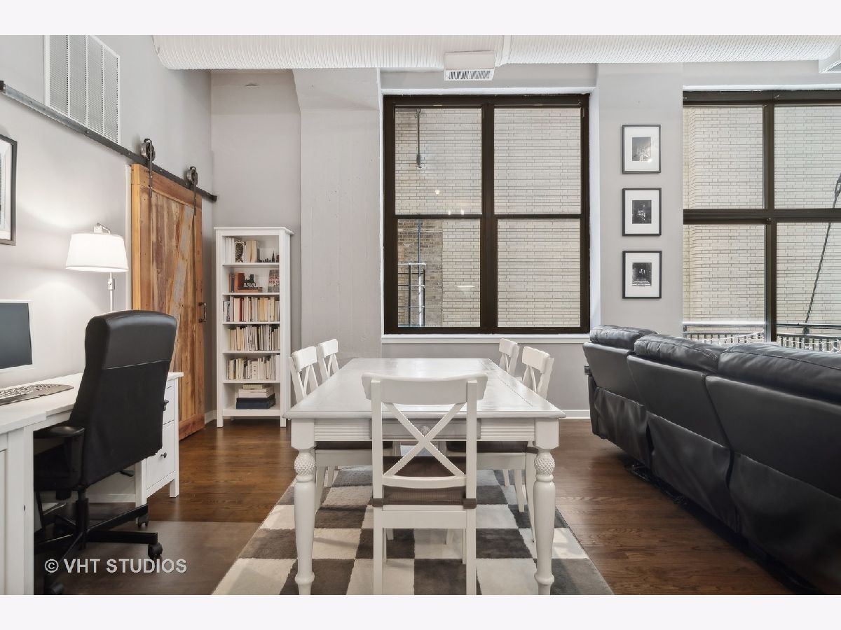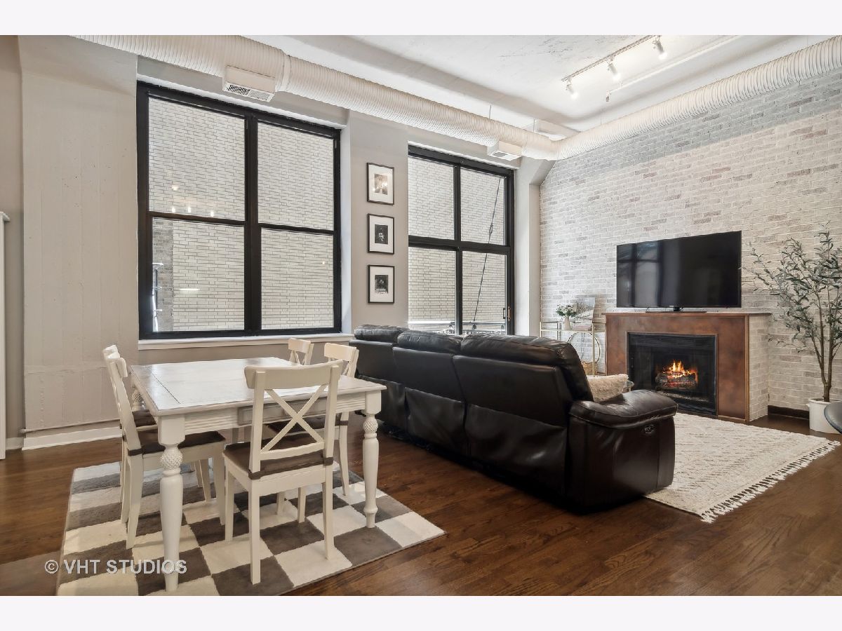 EXTREMELY RARE DUPLEX with 2 FULLY ENCLOSED bedrooms and den! Soaring 13ft concrete ceilings on BOTH FLOORS! MASSIVE, Wide open main floor is perfect for entertaining and features decorative brick wall, real hardwood floors, striking concrete columns, gas fireplace, exposed ductwork, balcony. Open kitchen has huge island, freshly refinished white cabinetry, and newer stainless appliances. Upstairs feels like a sanctuary with 2 HUGE bedrooms and separate den/office, perfect for WFH! Primary suite is OVERSIZED, easily accommodating a king bed and has a large WIC with Elfa shelving. Primary bath is BRAND NEW and feels like a spa. "Harrison Street Lofts" is set in HISTORIC Printer's Row with tree lined streets and some of Chicago's most significant architecture. The building is very well run; strong reserves, high owner occupancy, and ULTRA LOW monthly HOAs! Steps from restaurants, entertainments, Lake Michigan, multiple parks including Grant Park, and public transit.