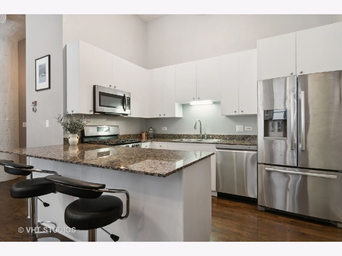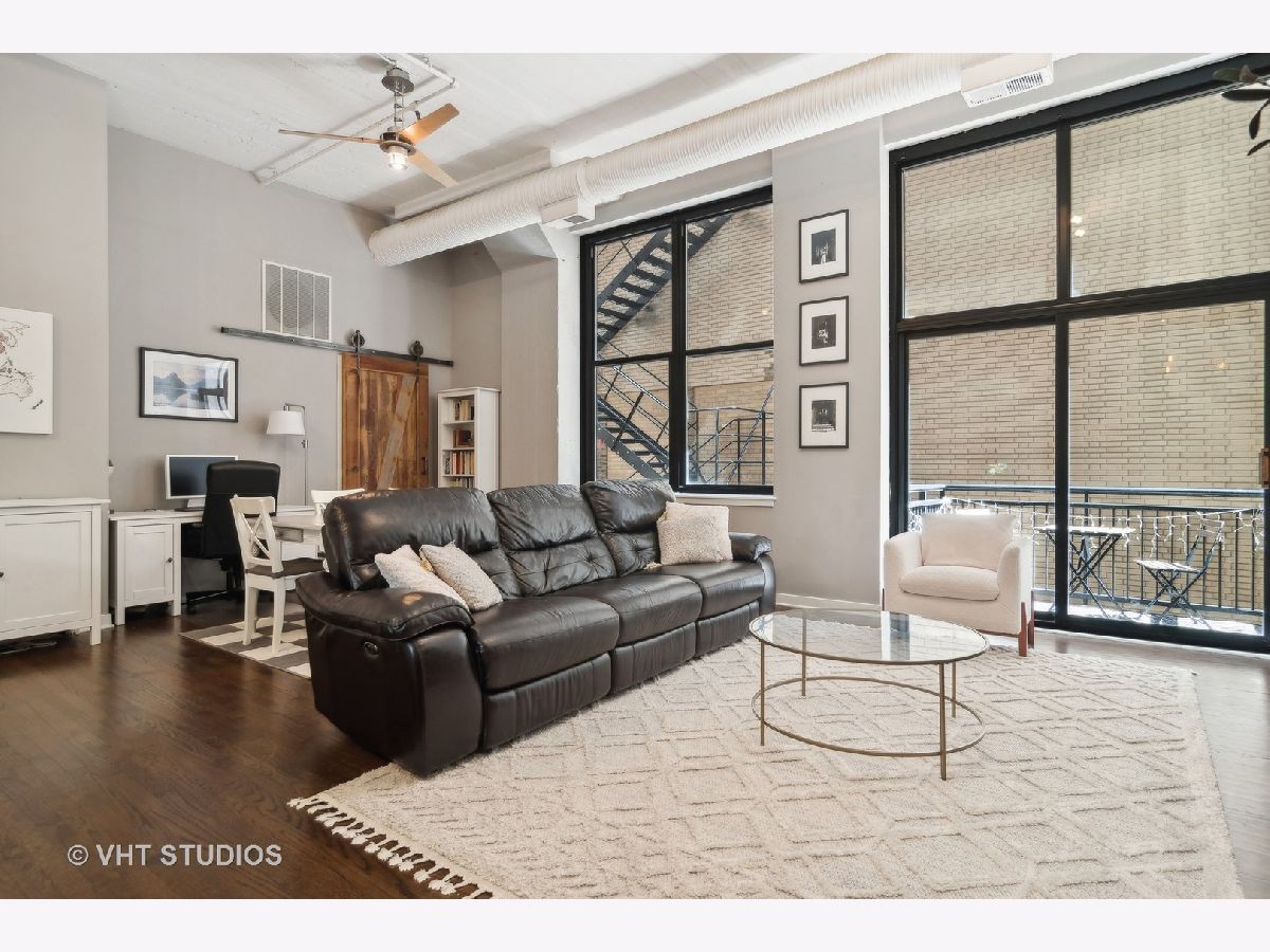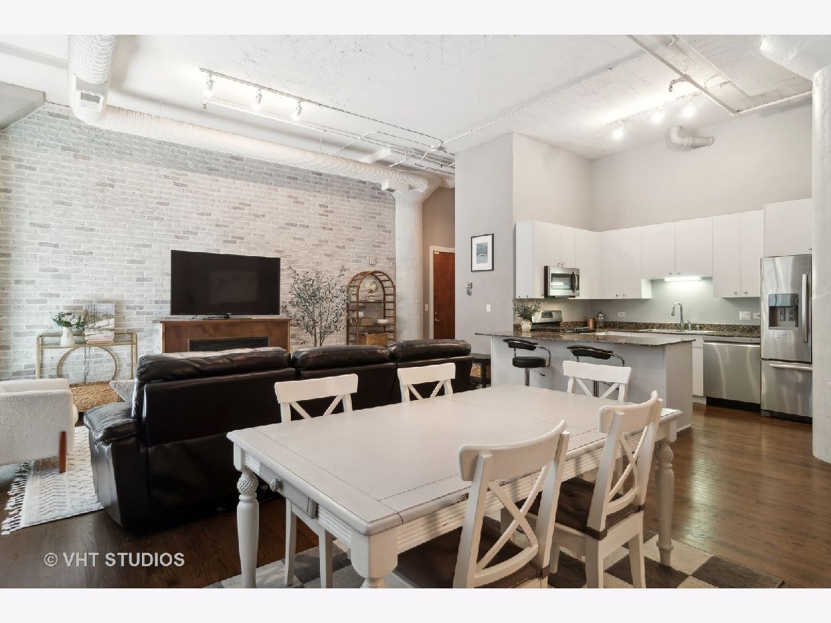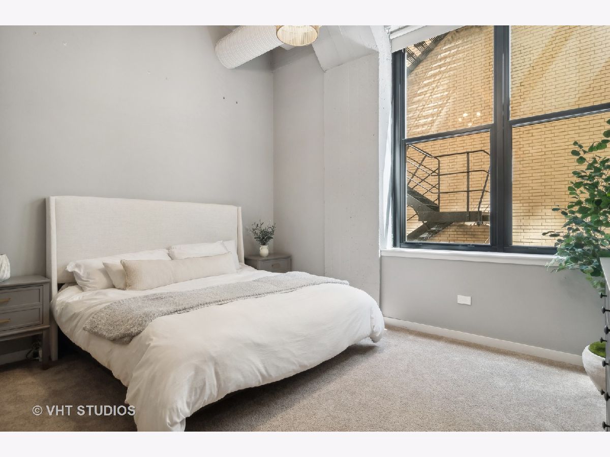 EXTREMELY RARE DUPLEX with 2 FULLY ENCLOSED bedrooms and den! Soaring 13ft concrete ceilings on BOTH FLOORS! MASSIVE, Wide open main floor is perfect for entertaining and features decorative brick wall, real hardwood floors, striking concrete columns, gas fireplace, exposed ductwork, balcony. Open kitchen has huge island, freshly refinished white cabinetry, and newer stainless appliances. Upstairs feels like a sanctuary with 2 HUGE bedrooms and separate den/office, perfect for WFH! Primary suite is OVERSIZED, easily accommodating a king bed and has a large WIC with Elfa shelving. Primary bath is BRAND NEW and feels like a spa. "Harrison Street Lofts" is set in HISTORIC Printer's Row with tree lined streets and some of Chicago's most significant architecture. The building is very well run; strong reserves, high owner occupancy, and ULTRA LOW monthly HOAs! Steps from restaurants, entertainments, Lake Michigan, multiple parks including Grant Park, and public transit.