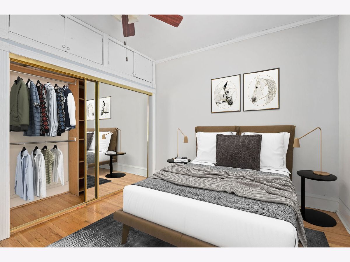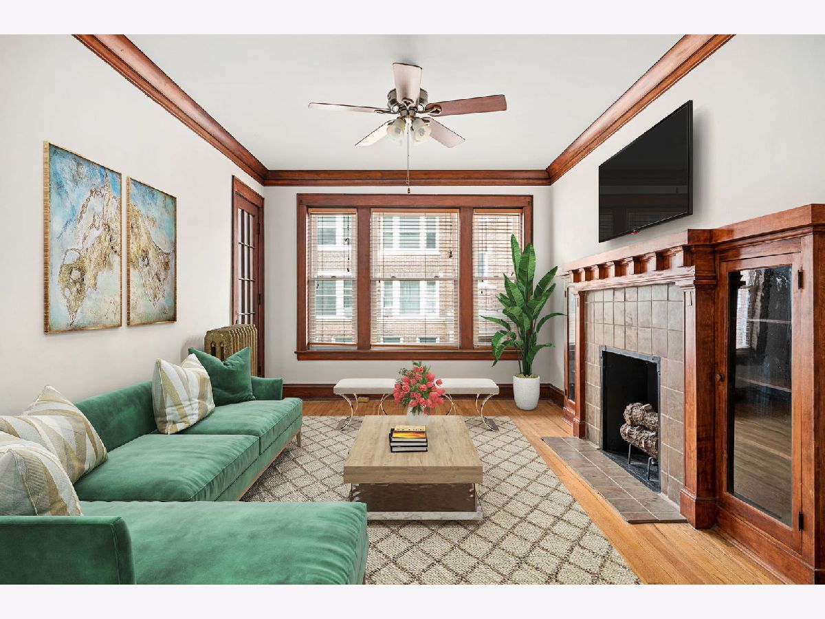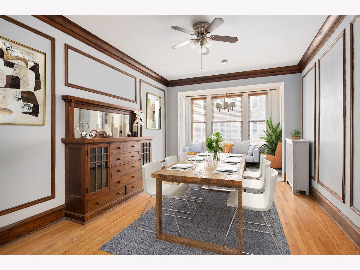 Fantastic Hyde Park large 1 BD/1 BA vintage unit (976 sq. ft.) in the 5460 Woodlawn Co-Op. This freshly painted high first floor unit features original 1920's hardwood flooring, elegant crown molding, wainscotting, and original door hardware and a beautiful built-in sideboard/hutch- a true vintage gem. Kitchen completely updated in 2012 with cherry cabinetry, stainless steel appliance package (2010) and built-in wine storage. Formal dining room open to an all seasons/sunroom overlooking the courtyard that is perfect for a home office or art studio. Semi private deck in the rear as well as a common enclosed courtyard outfitted with common barbeque grills and picnic table in the summer. Walking distance to so much: Trader Joe's, Starbucks, Target, DIIVY bike rental stations, University of Chicago, many restaurants, Museum of Science and Industry, Lake Michigan and lakefront, little more than 1/2 mile to Metra stations. 100% owner occupied, real estate taxes are included in the monthly assessment ($573/month). All double-pane windows replaced (2012), newer rear decks and stairs (2010), water heater (2015), full interior painted (2023), roof was recovered fully (2021), parapet walls rebuilt (2021) and tuckpointed (2017). Walk-in basement storage (10x5x10). No current or upcoming special assessments. Owner is able to rent with restrictions in-place. $271,000 as 06/07/2022