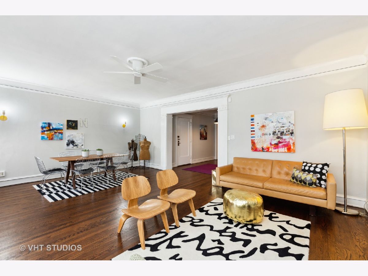 Rare, large vintage modern condo along iconic Hyde Park Boulevard. Spacious 2200 square foot floorplan includes 4 large bedrooms, 3 full bathrooms, generously sized living room, dining room, family room, sunroom, private back porch and modern kitchen. Fourth bedroom is perfect as a work-from-home office complete with its own dedicated bathroom. Charming details include original woodwork dating to the early 1900s, clawfoot bathtub and hardwood floors throughout. Renovated bathrooms and kitchen with designer finishes, custom California Closets, luxury Shade Store window treatments and W/D in unit. One assigned exterior large parking space included. Steps to the lakefront, bike trail, Museum of Science and Industry, Whole Foods, Trader Joe's, a James Beard award-nominated chef/restaurant and more.