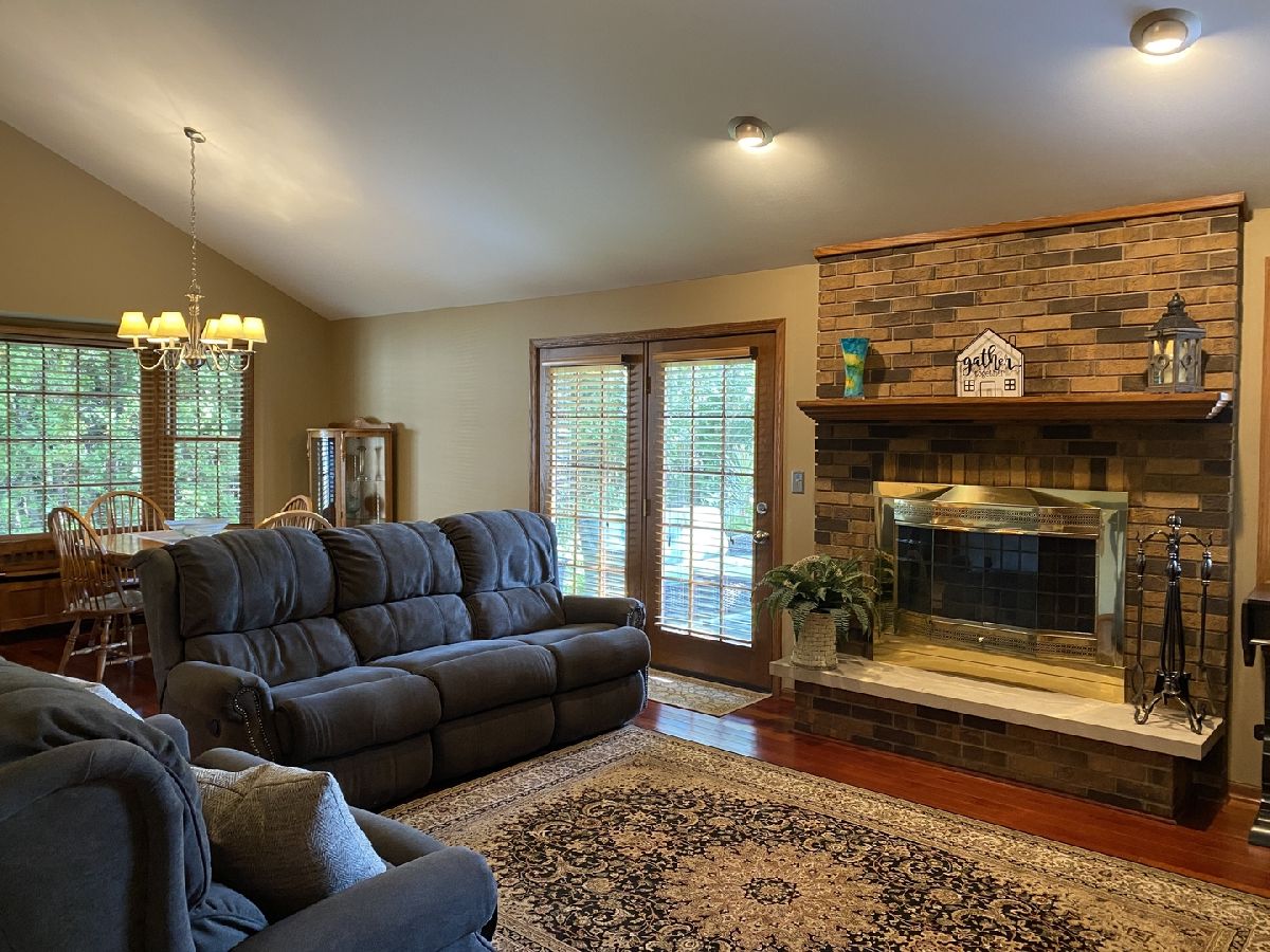 Wonderful move-in ready ranch. This is perfect whether you are looking for a one story home or you are just looking for the right house in a nice neighborhood. The original owners have meticulously maintained and nicely updated this home. It has an open floor plan with Brazilian Cherry floors, vaulted ceiling and fireplace in the living room and dining room. The remodeled kitchen has solid oak cabinets, quartz counters, glass tile backsplash and stainless appliances. The kitchen has a pantry closet with pullout shelves and room for a breakfast table. There are 3 bedrooms and 2 1/2 baths on the main floor. The bathrooms were recently updated with new fixtures and ceramic tile walls and floor. The primary bedroom has a private bath and dual closets. Laundry with LG washer and gas dryer is also conveniently located on the first floor. The home has a full basement. Plumbing is roughed in for another bathroom. Step out back and you will appreciate the shade and privacy of the landscaped yard and patio. The roof was replaced in 2017 and the exterior was recently painted. The home has Marvin windows, Lennox central air, 200 amp electric and full masonry chimney. The oversized 2 1/2 car garage is insulated and drywalled, has insulated door with smart opener, utility sink and floor drain. We think you will appreciate the quality of this home and the in-town location.