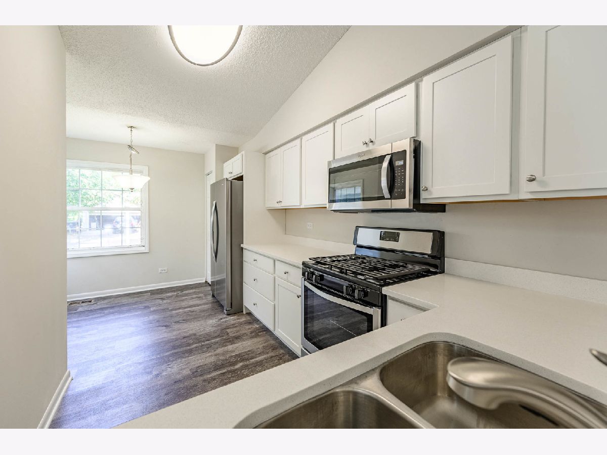 Updated 1/2 Duplex Ranch in desirable Naperville! New Kitchen now with white soft closing cabinets and drawers, beautiful quartz countertops and all new stainless-steel appliances! NEW luxury LVT flooring, carpet and freshly painted throughout! Updated baths and living room fireplace with a NEW porcelain hearth! This is a must see! Vaulted ceilings, master suite with full master bath, attached garage with fenced in backyard and patio! HOT LOCATION! Close to schools, parks, shops, restaurants and more!