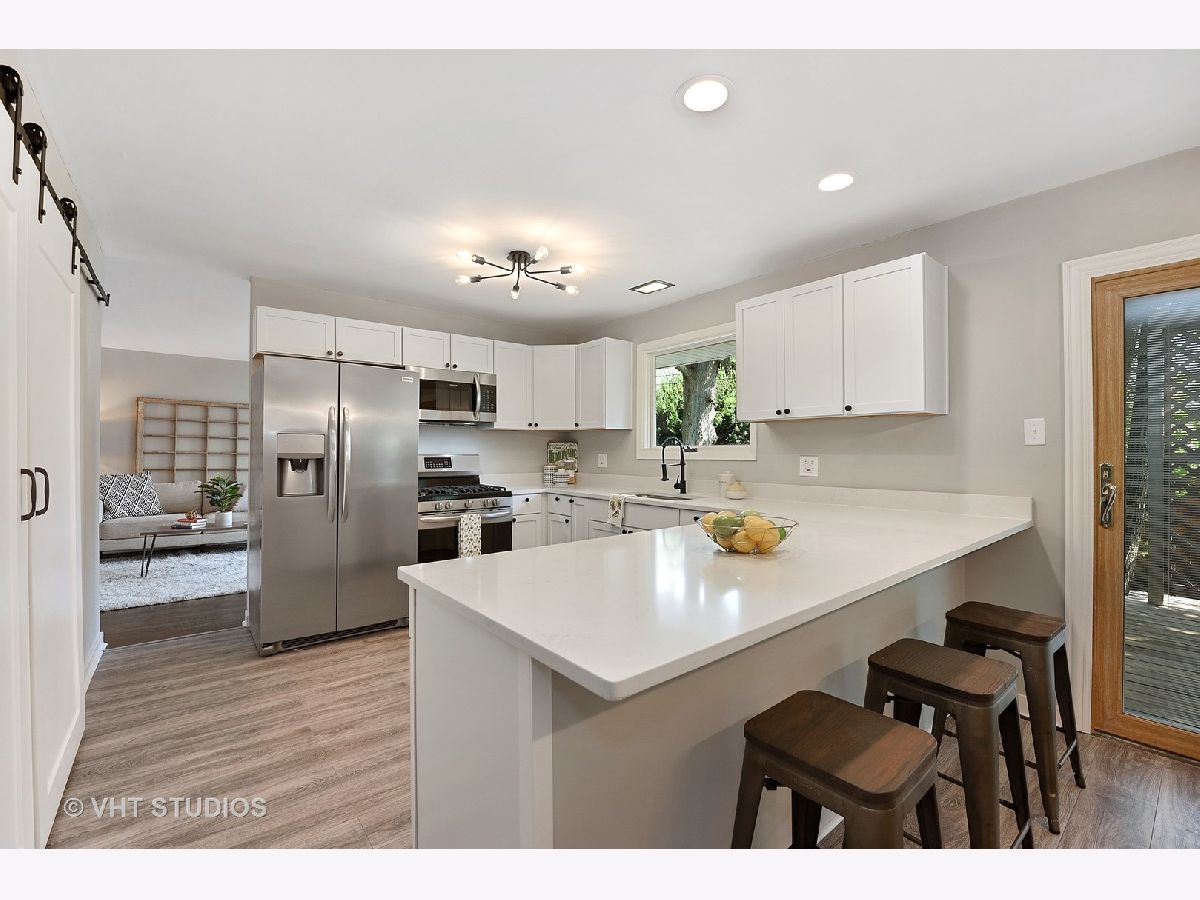 This stunning home was just updated and includes two bright and spacious living spaces, a stunning white and gray kitchen with mod quartz counters, breakfast bar and new stainless appliances. 3 large bedrooms with closets galore (floor to ceiling -- the beauty of 1960s construction!), refinished hardwood floors and laminate throughout, plus an awesome laundry room off the kitchen with barn door access. This home is solid! Newer roof (2016), AC (2020), hot water tank (2020), water meter and electrical panel plus fixtures (2020). Selections from floor color to light fixtures to paint made by a designer with attention to detail. Beautifully landscaped yard with deck and pergola and paver patio. Move in ready with updates that will run smoothly for years to come. Feels like an HGTV home!