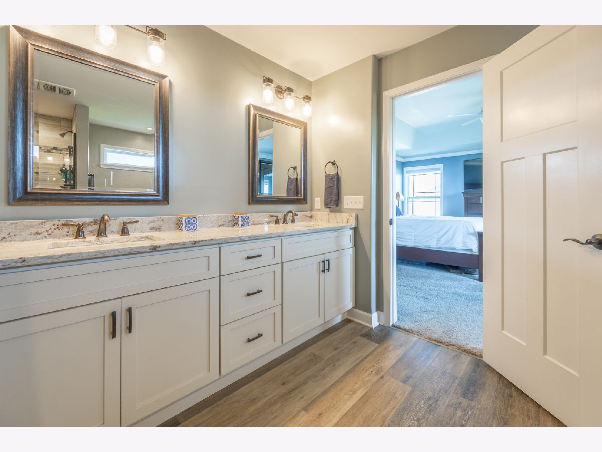 Welcome to the epitome of modern luxury living in the coveted North Grove Crossing neighborhood. This home showcases upgrades that elevate it above and beyond the others. Built with meticulous attention to detail, this custom home embodies a perfect blend of elegance and functionality. Step inside and be greeted with a spacious open floor plan. With over 2,600 square feet of meticulously designed living space, every corner of this home radiates warmth and sophistication. The main level boasts durable vinyl plank flooring, setting the stage for a stunning interior adorned with urban farmhouse-inspired details and unique Sherwin-Williams splashed walls that are neutral and unique. Enter easily in the open-concept great room, dining area, and sunroom, where natural light pours in through large windows, creating an inviting ambiance. The chef-inspired kitchen is a culinary delight, featuring sleek black stainless steel appliances, granite countertops, upgraded cabinets equipped with soft closures, a walk-in pantry and a generously sized center island-perfect for hosting gatherings or casual family meals. The attention to detail continues upstairs, where four spacious bedrooms offer comfort and privacy for the whole family. The master suite is a true retreat with a tray ceiling, a large walk-in closet, and a spa-like bathroom featuring double vanities, a soaking tub, and a separate shower. But the allure of this home doesn't end there. Walk to the lower level into the partially finished basement, where you'll find even more living space, including a FIFTH BEDROOM and a third full bathroom-perfect for overnight guests or extended family members. Outside of this home extends to the picturesque yard, where you can relax and unwind on the concrete patio or soak in the sunshine from the delightful sunroom. This is a beautiful place to watch sunsets with the family or have an early morning coffee. With top-rated Sycamore schools just moments away, this home offers unparalleled luxury and the reassurance of a prime location for your children's education. Don't miss your opportunity to own this exceptional property-
