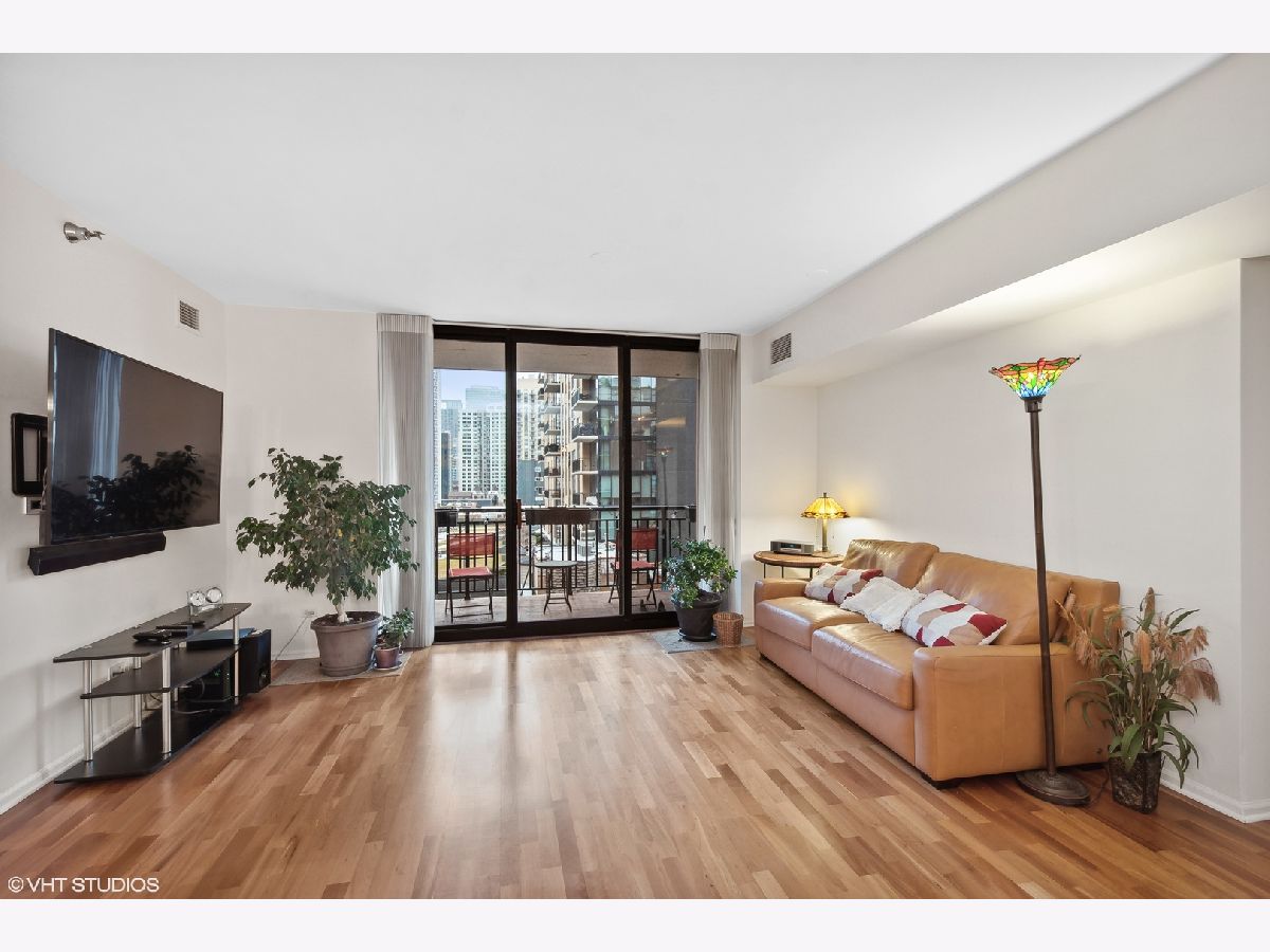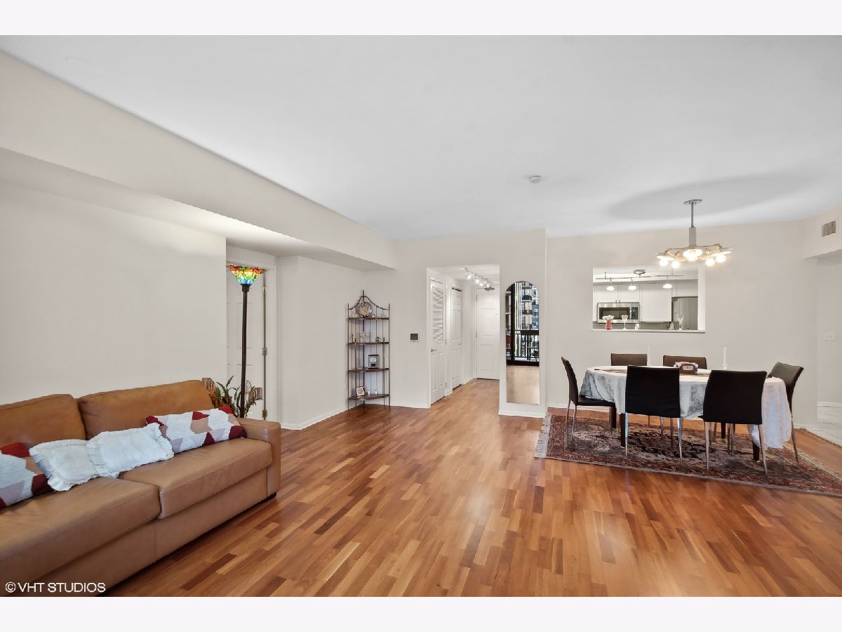 Prime Gold Coast location tucked in a private courtyard at Park Newberry directly across from Washington Square Park! This intimate condo location feels a world away from the city yet is in the heart of all! Prime Near North location close to Gibson's steakhouse, Hugo's Frog Bar, Adalina, Maple and Ash, Carmine's on Rush, and Le Colonial to name a few! Great local establishments to enjoy Chicago all right outside your private intimate inner courtyard. Home features a spacious and wide open floor plan with southern exposure towards Chicago's famed skyline. This home is a generous 1500 square feet with hardwood floors throughout condo. New quartz kitchen countertops and bathroom as well! Sleek white cabinets in kitchen and new bathroom fixtures as well! Tile floors in kitchen with a breakfast area that could make for a fantastic office space as well, spacious Main bedroom with two side by side walk in closets. The second bedroom is a split floor plan with a large walk-in closet and 2nd bathroom right outside. Spacious balcony overlooking city and some greenery on adjacent building. Wonderful exercise room with warm and friendly doorstaff to help assist a great lifesytle in prime Near North side location. Washington Square Park is directly across the street with ample street parking for guests and friends visiting. Heat, air, & cable included in assessment. Dogs to 25 lbs. Parking space #5 additional $55,000 and includes a good sized storage room #5 with a door and a key entry to store additional items directly off parking spot!