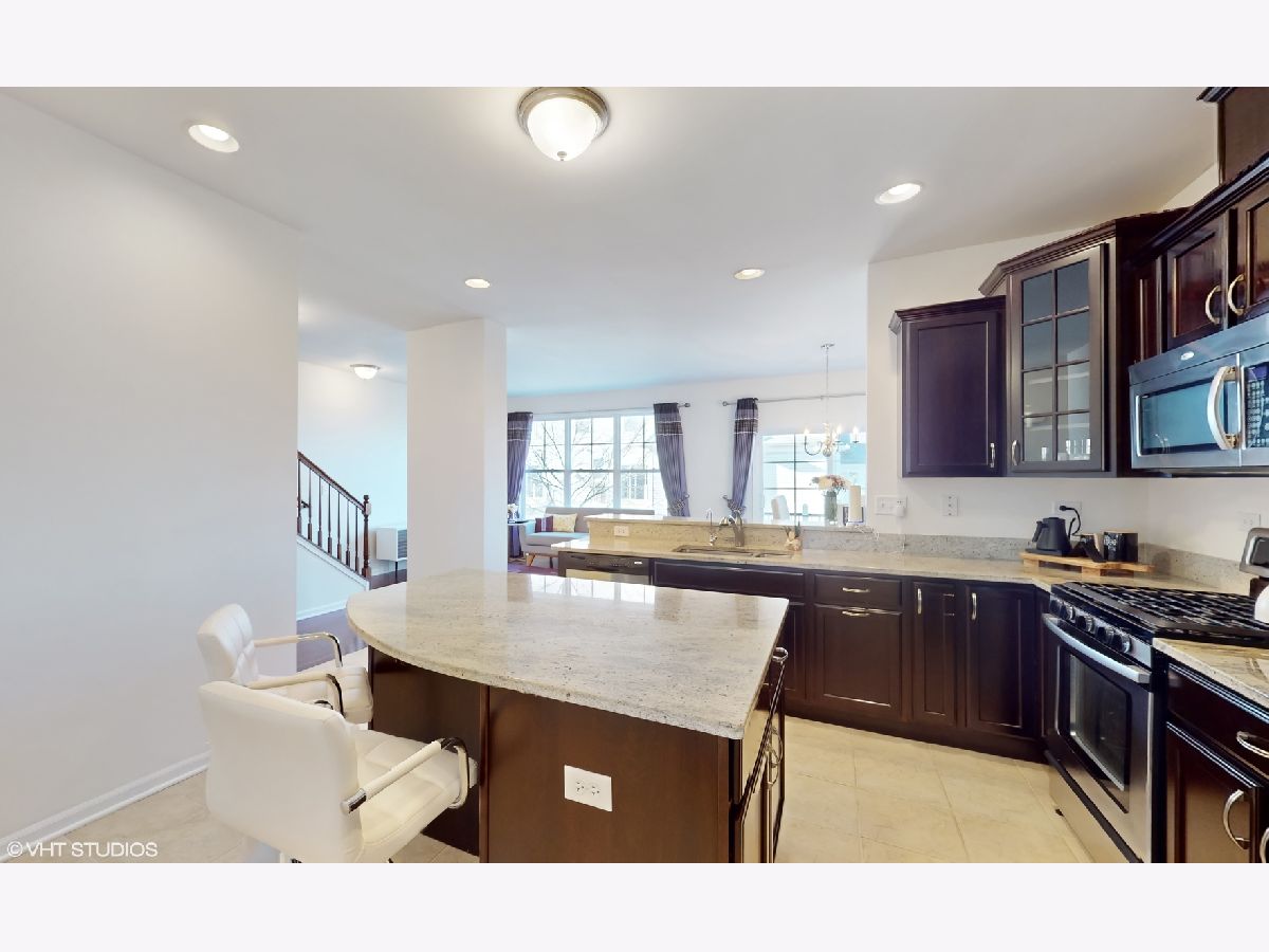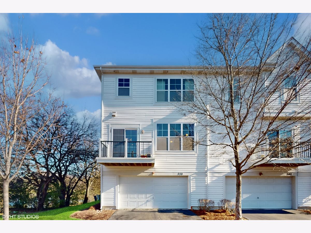 Welcome to 550 Grosvenor Lane at 'The Plaza on New York'! You will fall in love with this rare end unit, overlooking the lake with beautiful scenic views. Beautiful Waldorf model, with the biggest design size in the community. This meticulously maintained 2448 sq ft house consists of 2 large bedrooms, flex room/home office, 2.5 bathrooms, a finished basement, and a large 2 car garage with extra space for storage. Be amazed when you walk through the beautiful house front, overlooking the lake into the 16 foot-high living room with large ceiling-height windows and a cozy fireplace. Spectacular gourmet kitchen with huge island, 42-inch dark cherry wood cabinets, stainless steel appliances, granite tops, and two pantry closets. Enjoy your morning coffee or evening beverage on a private balcony overlooking the green space. Hardwood flooring in the family and living room. The large primary bedroom includes a deep walk-in finished closet with an ensuite bathroom that offers dual vanities on granite countertops, a large soaking tub, and a separate standing shower cubicle. The second large bedroom offers beautiful views of the lake from multiple directions. Comes with a walk-in closet and a bathroom. The upper living space consists of a large flex room which can be used as a dedicated office or children's play area. Enjoy the convenience of not having to haul your laundry upstairs with a 2nd-floor laundry room. The fully finished basement includes plenty of room as a second living space plus an additional 2 storage area closets. 9-foot Ceiling, oak rails, finished closets including a shoe and coat closet in the foyer, brand new carpet across the whole house, freshly painted, and storage space built in the garage with extra shelving. Enjoy worry-free high speed EV car charging with an installed Tesla home electrical car charger in the garage. Award-winning Naperville 204 School District, with walking proximity to the train station. Shopping within a 2-mile radius includes Meijers, Target, Costco, Whole Foods, and Macy's. 3.5 miles from Naperville downtown.